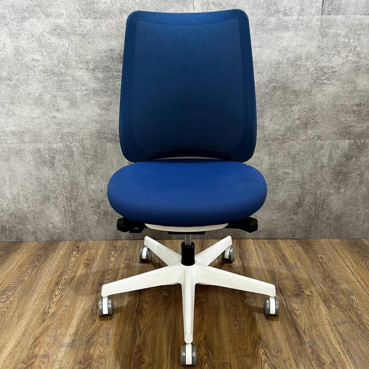 ★【K12】【T10】【K8】【商品入替のため、残り7脚限り】【23年製】オカムラ製 ポータム ブルー ホワイトフレーム 背面メッシュ コートハンガー 座面前後調整 肘無しハイバックチェア!!