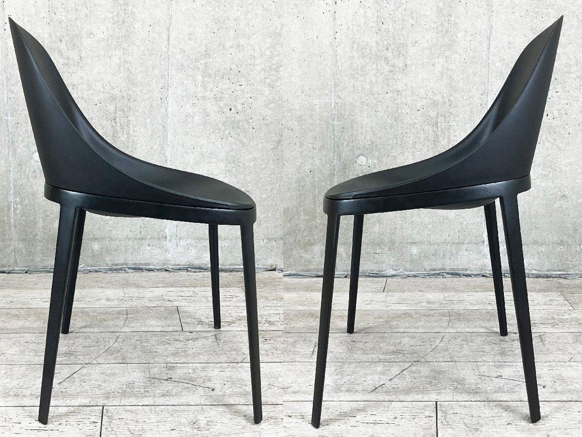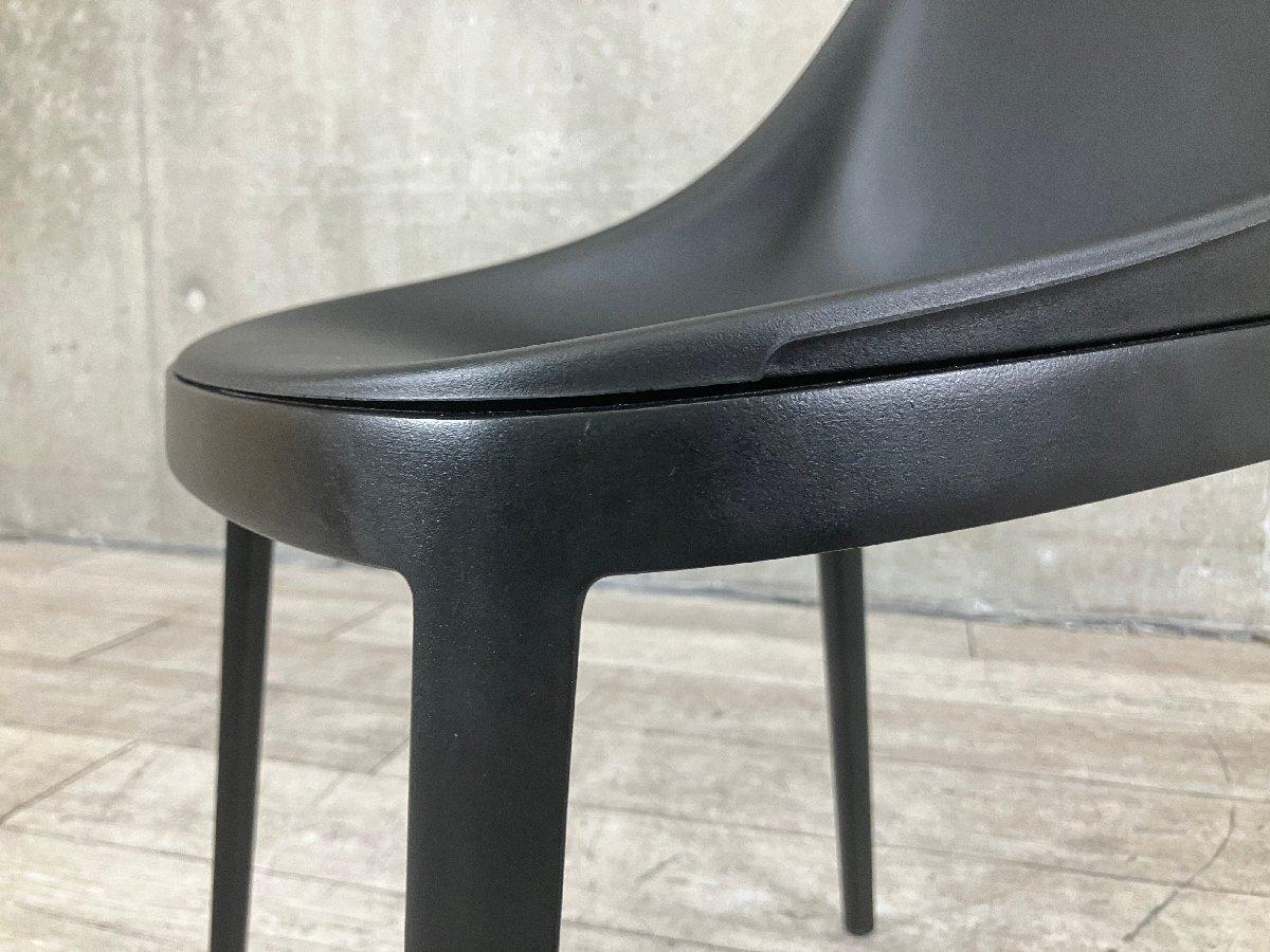 異なる素材を組み合わせて生まれたこのチェアは、角度のある官能的なフォルムと、わずかに前傾したベースによって、座るだけでダイナミズムを感じられる造形。