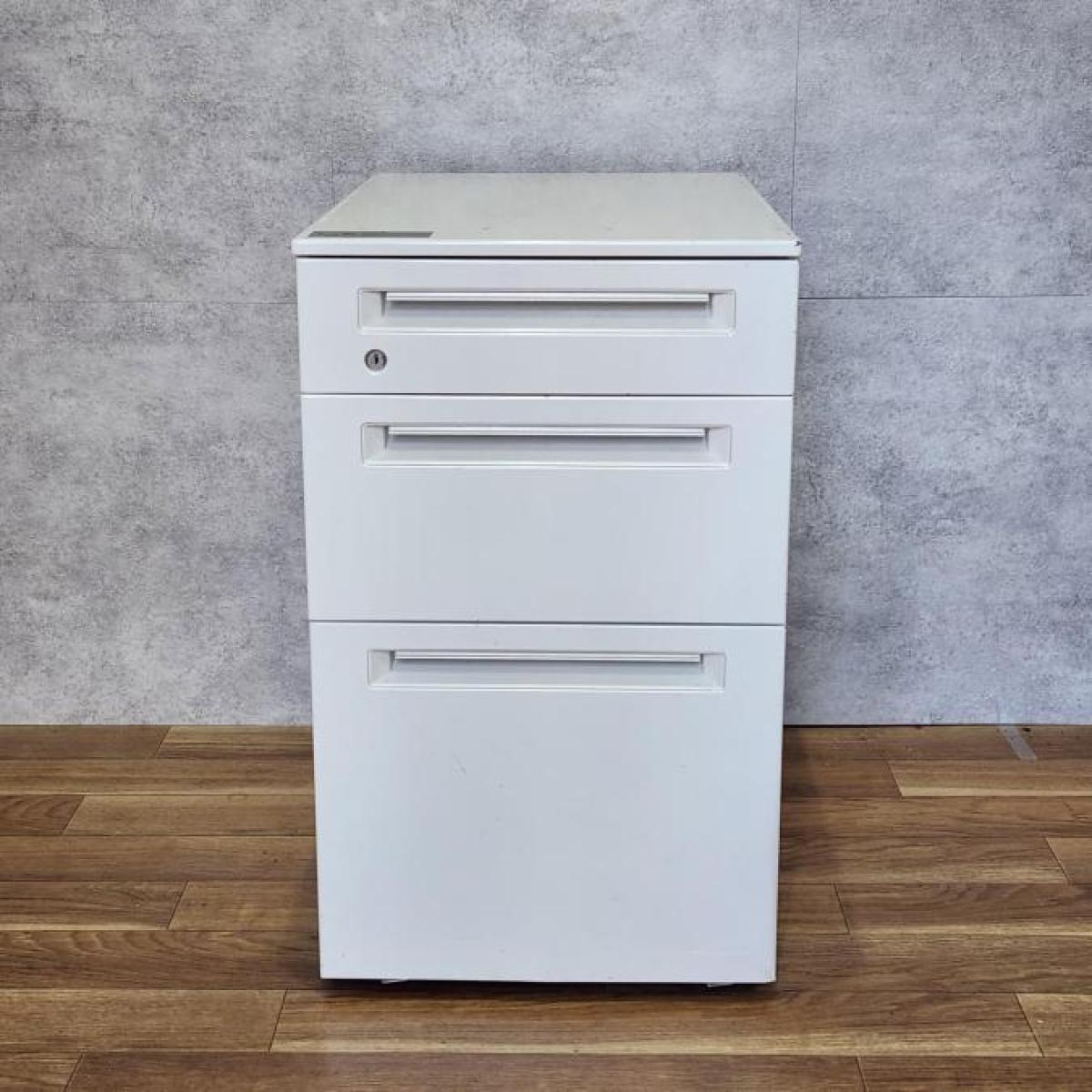 ■オカムラ(okamura)製 ■ アドバンスシリーズ ■3段ワゴン ■フリアド用 ■H650㎜ ■シリンダー錠 ■ホワイト ■収納 ■オススメ/人気/定番商品 【弊社使用欄:A01040362】