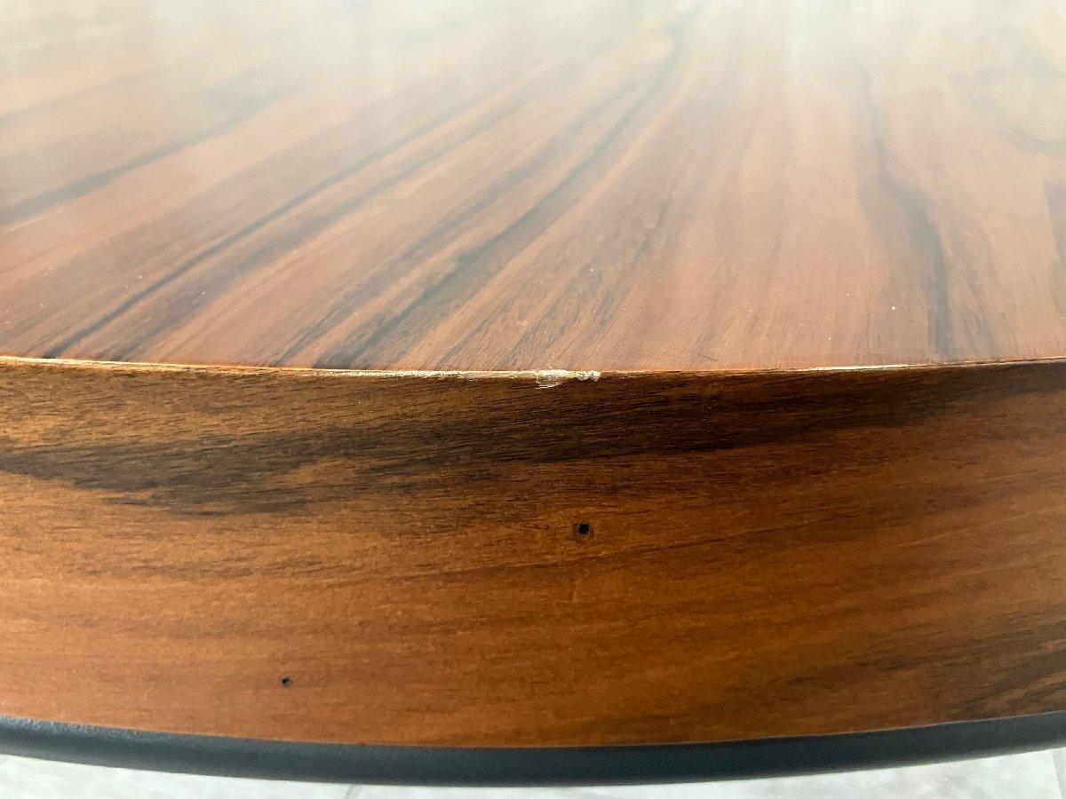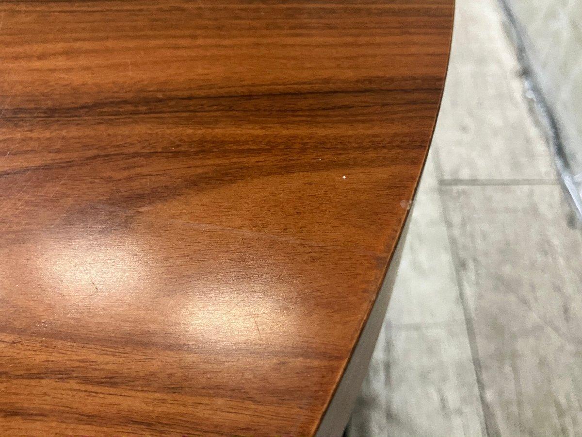 - かなり強い濃い黄ばみ・変色が商品全体にある。(例、天板、幕板、棚板、サイド部分、脚部等にある。)