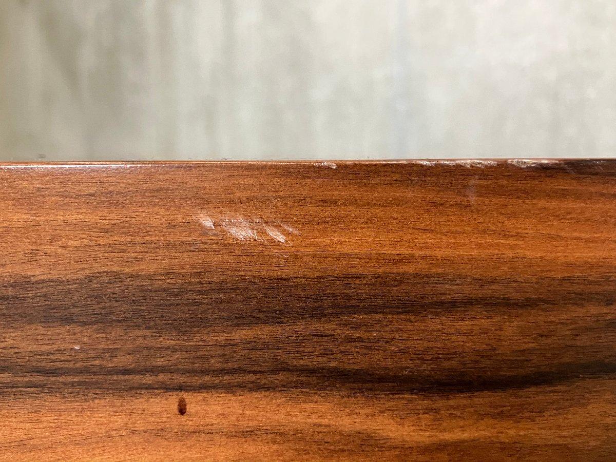 - 目立つ箇所あり傷・凹みが多数、深い傷・凹みが一部ある。(例、天板、幕板、棚板、サイド部分、脚部等にある。)