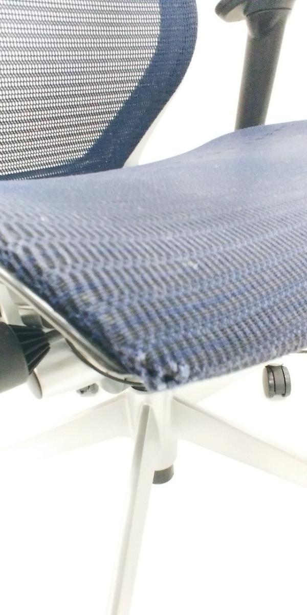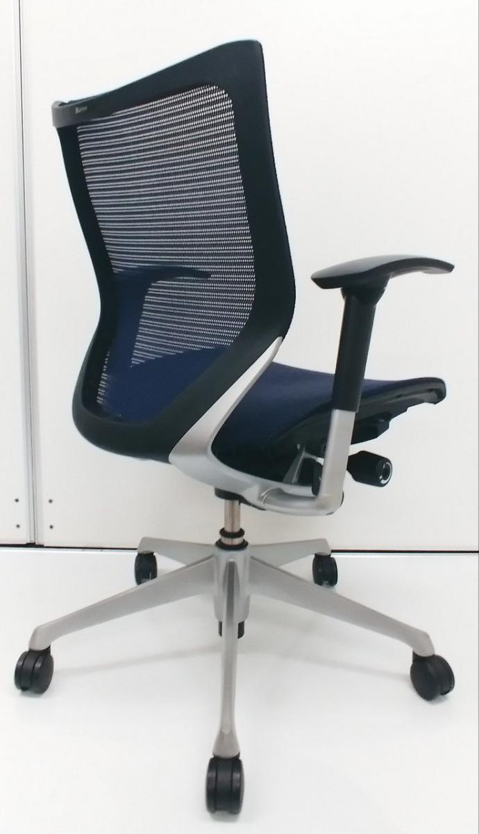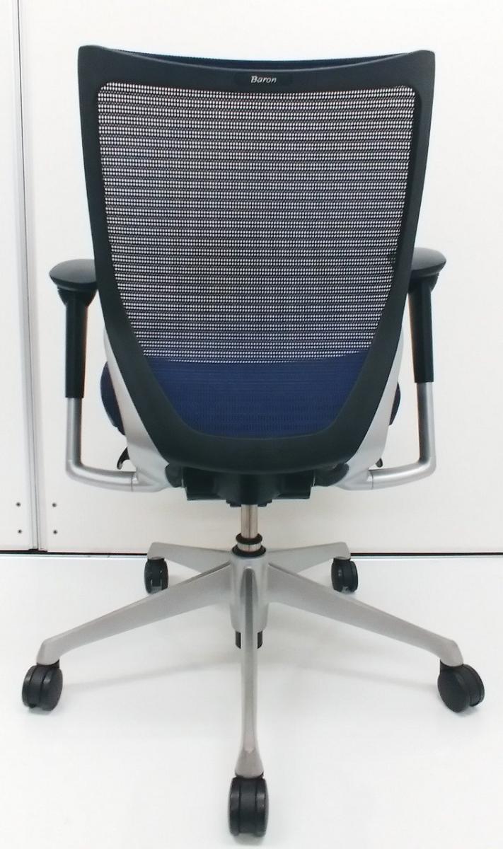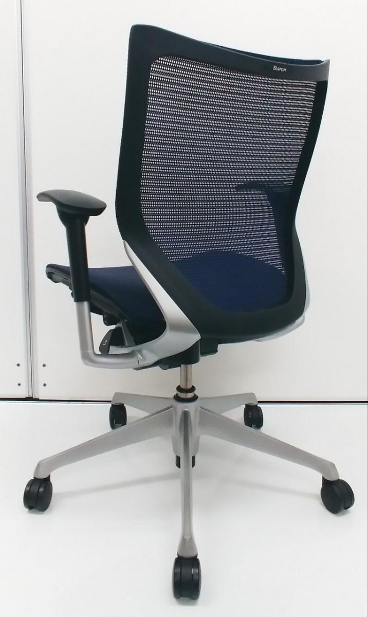 【座面が大人気!国産メッシュチェアの代表格!】■オカムラ(okamura)製 バロン(Baron)チェア ローバック 肘付き ■背面メッシュ ■固定肘 ■色:ダークブルー ■ハンガー付き