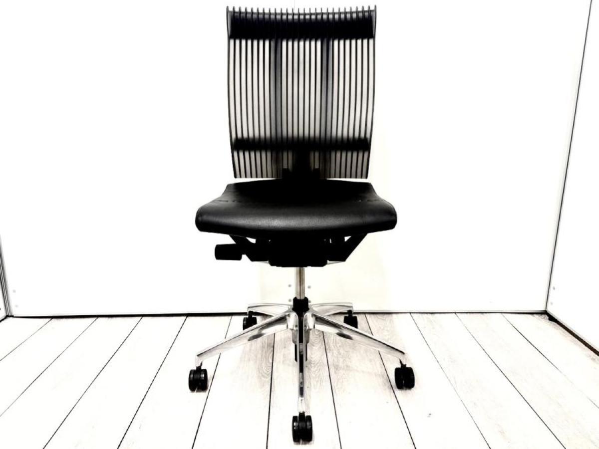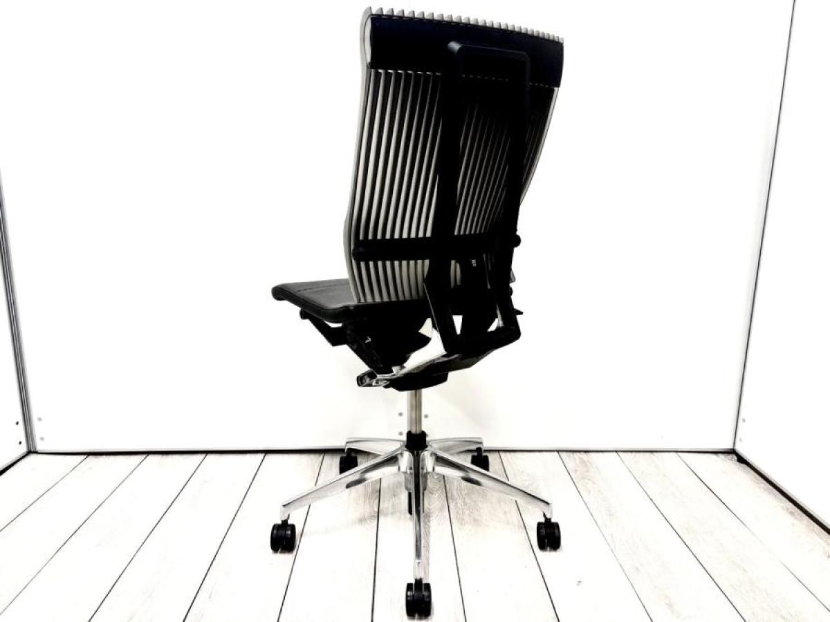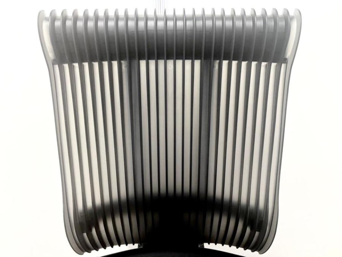 見た目は少し硬そうに見えるエラストマー素材ですが、座ってみると程よいしなり具合のやわらかな座り心地で、背中が痛くなるようなことはまるでありません。面ではなく線で支えることで、背面の通気性の良さは抜群です。