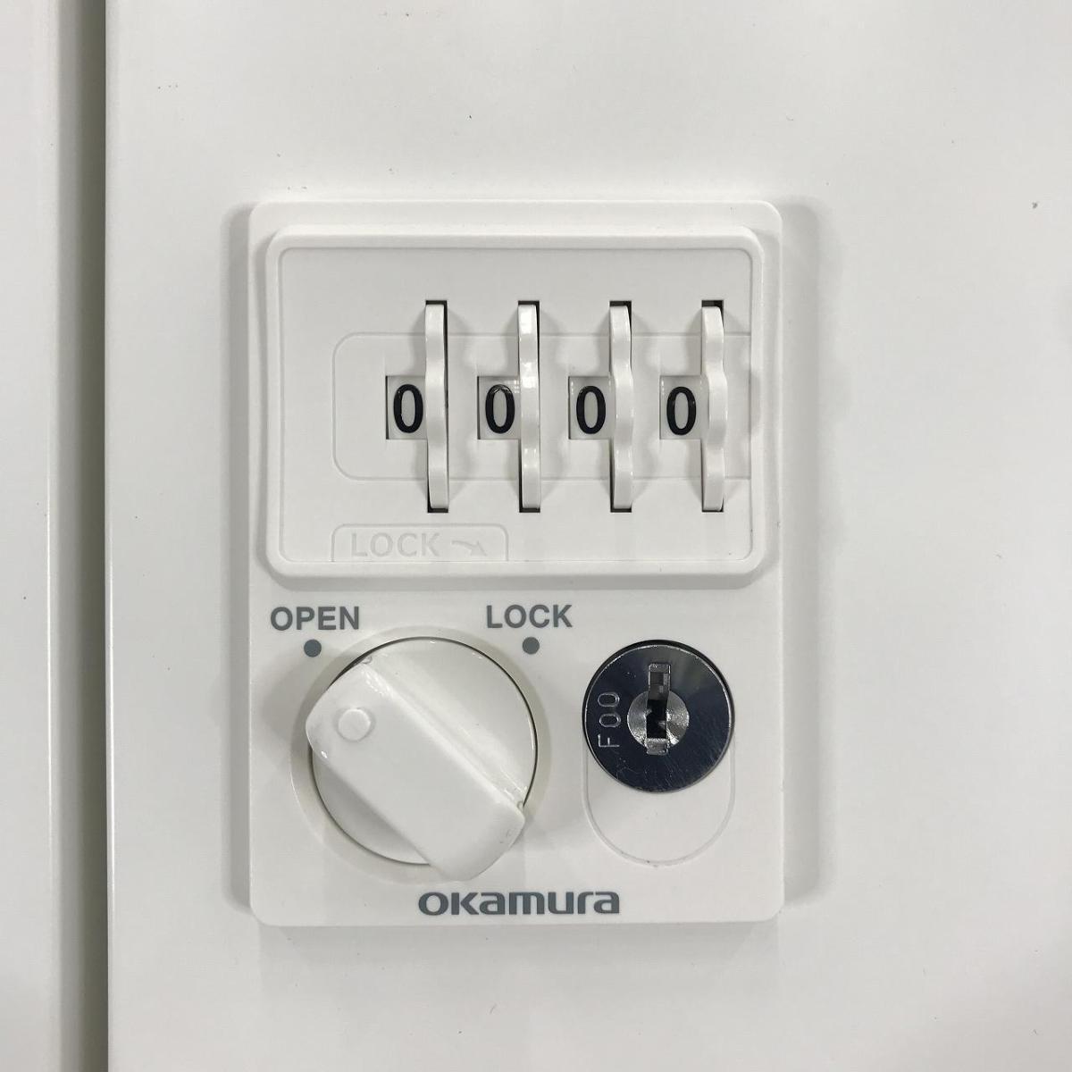 オカムラ レクトライン 3段ラテラル+両開き扉の書庫セット ホワイト シリンダー錠 鍵お付けします 人気商品