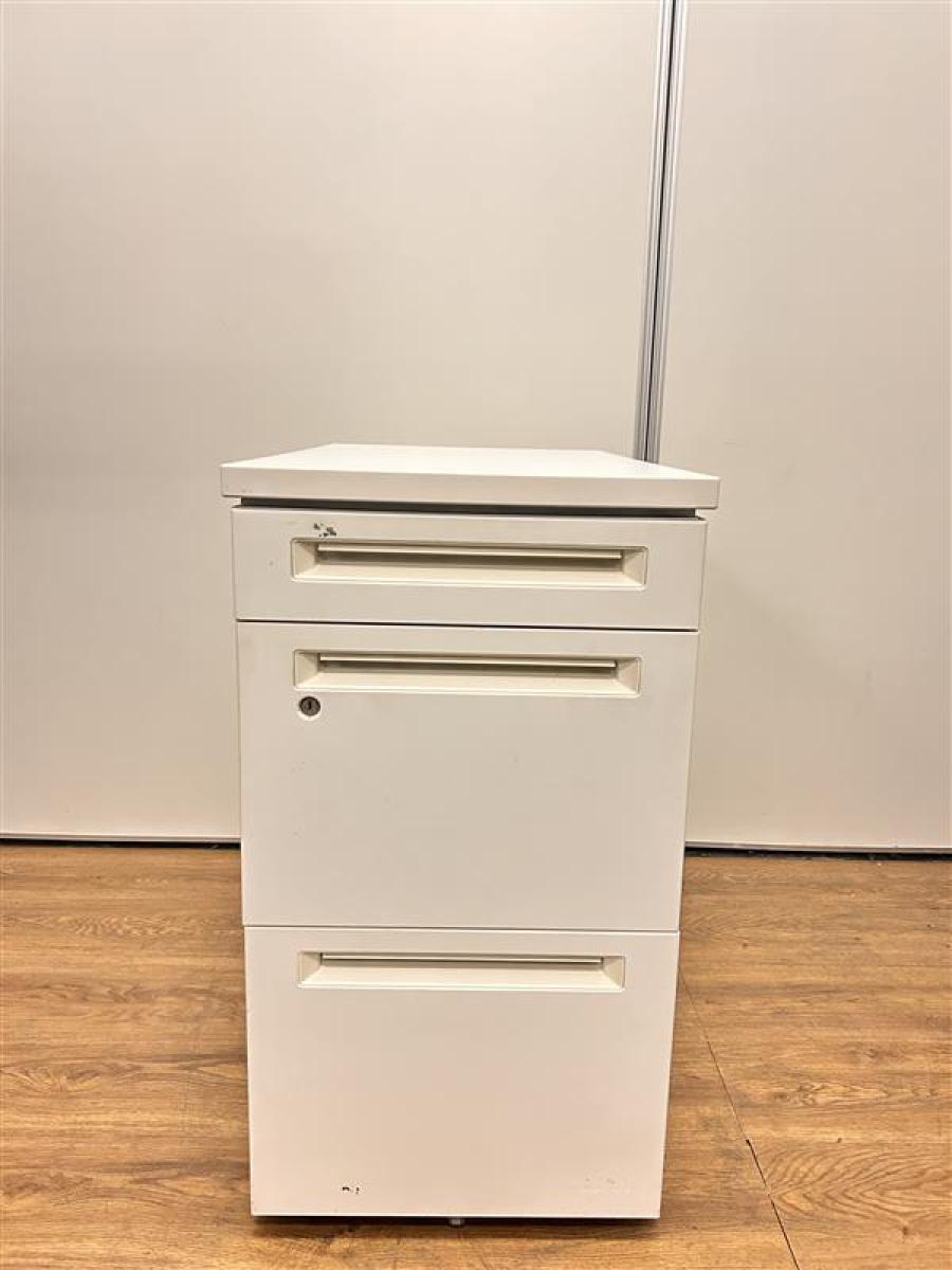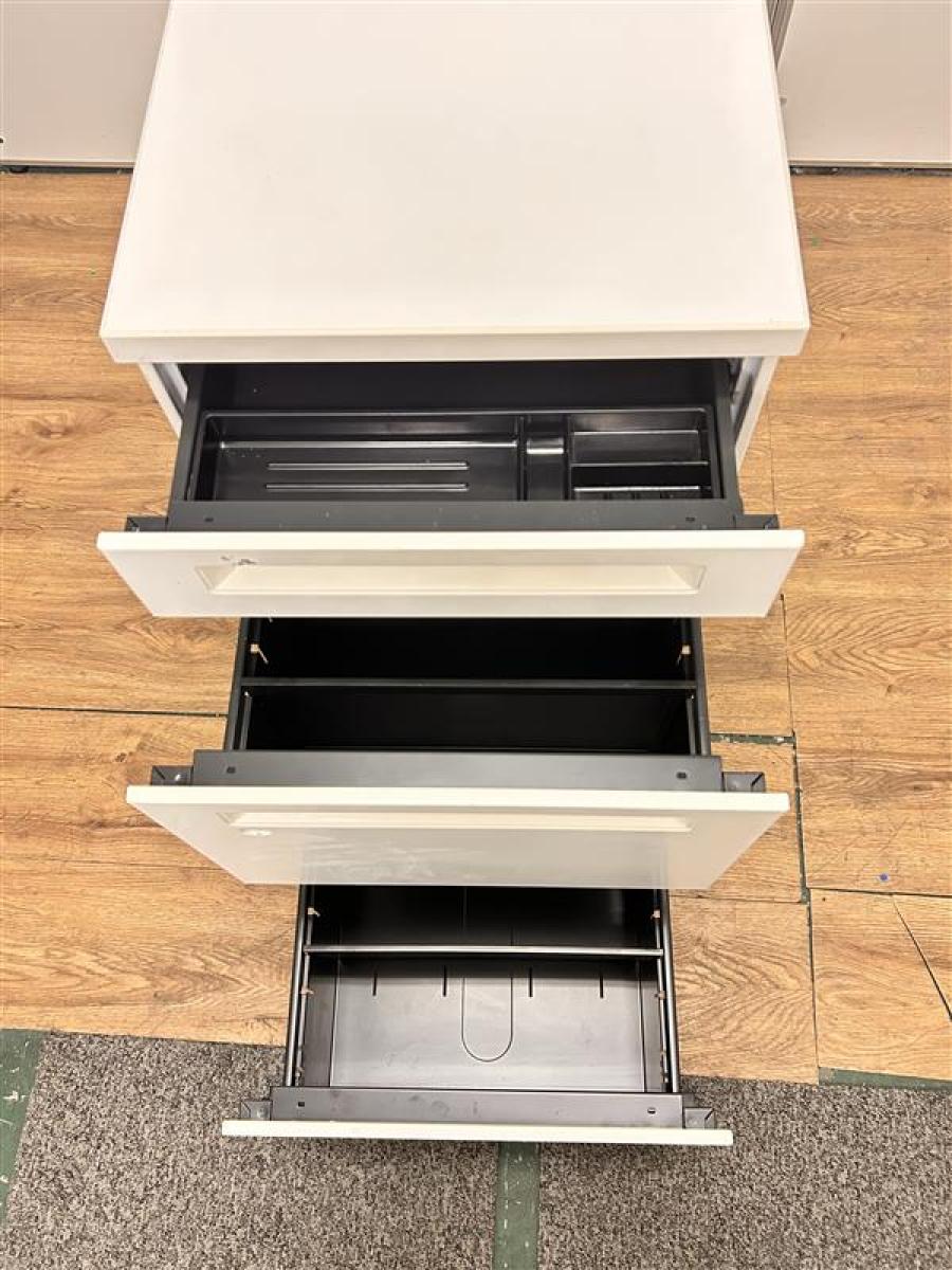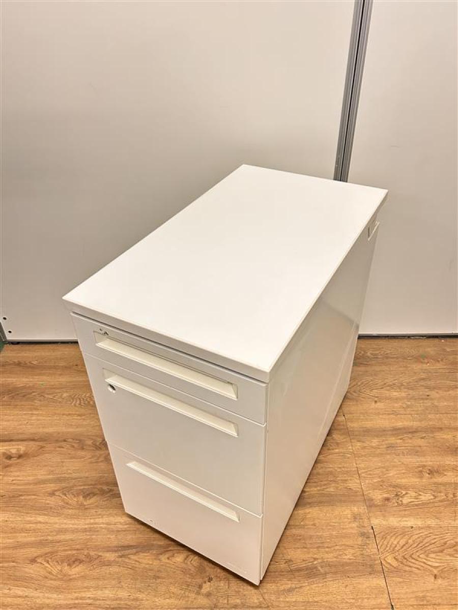 【2台限定】3段脇机 オカムラ ホワイト シリンダー錠 鍵付き H720のデスクと一緒にお使いくださいませ オフィスバスターズ 梅田本店【未】- 大阪梅田本店