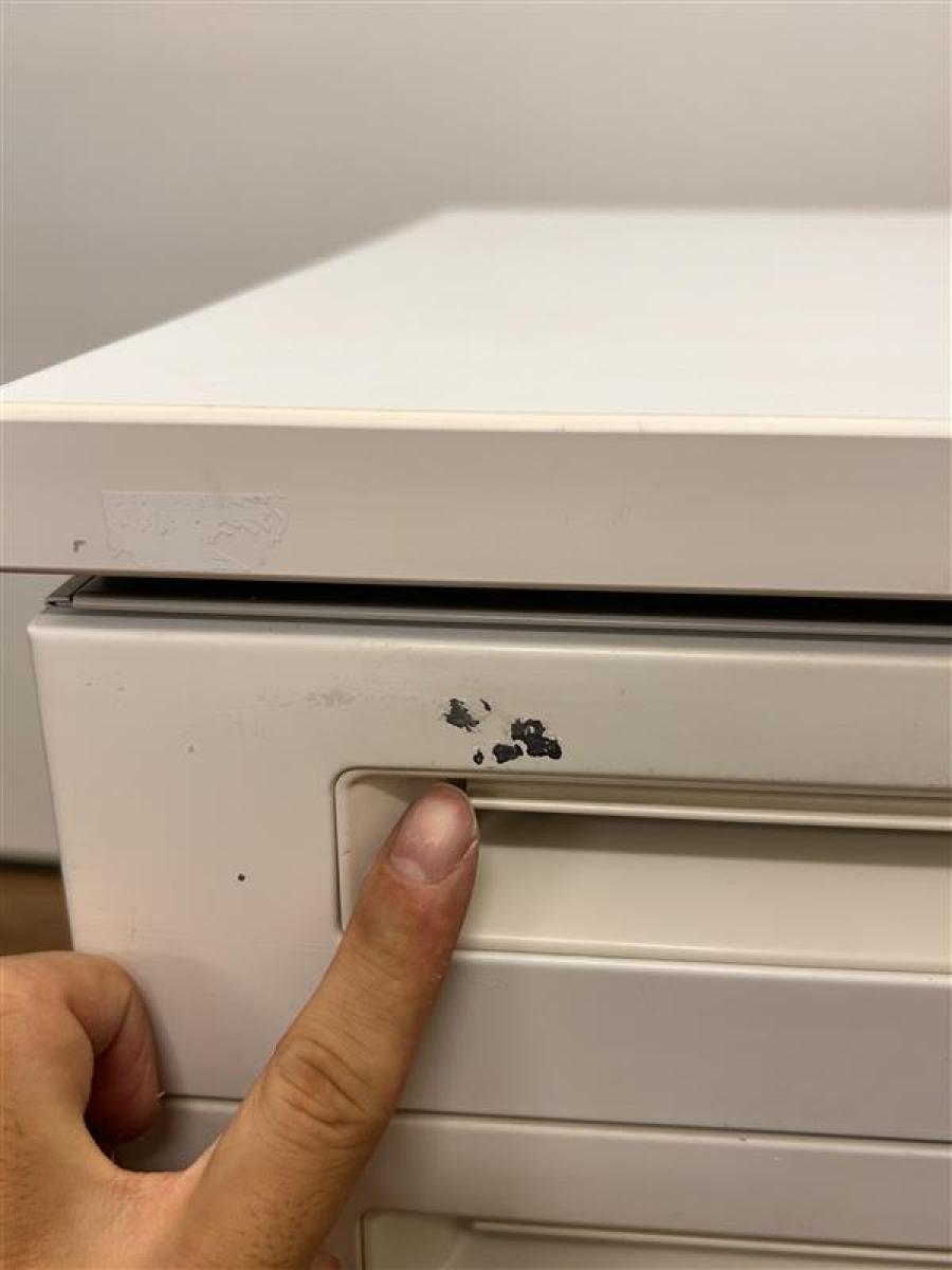 - 一部不具合ありその脇机・ワゴンの本来の効用を果たすための機能以外の一部が使用不可な状態。(例、引出が開閉しづらい、 キャスターロック機能使用不可、ラッチ不良 等がある。)