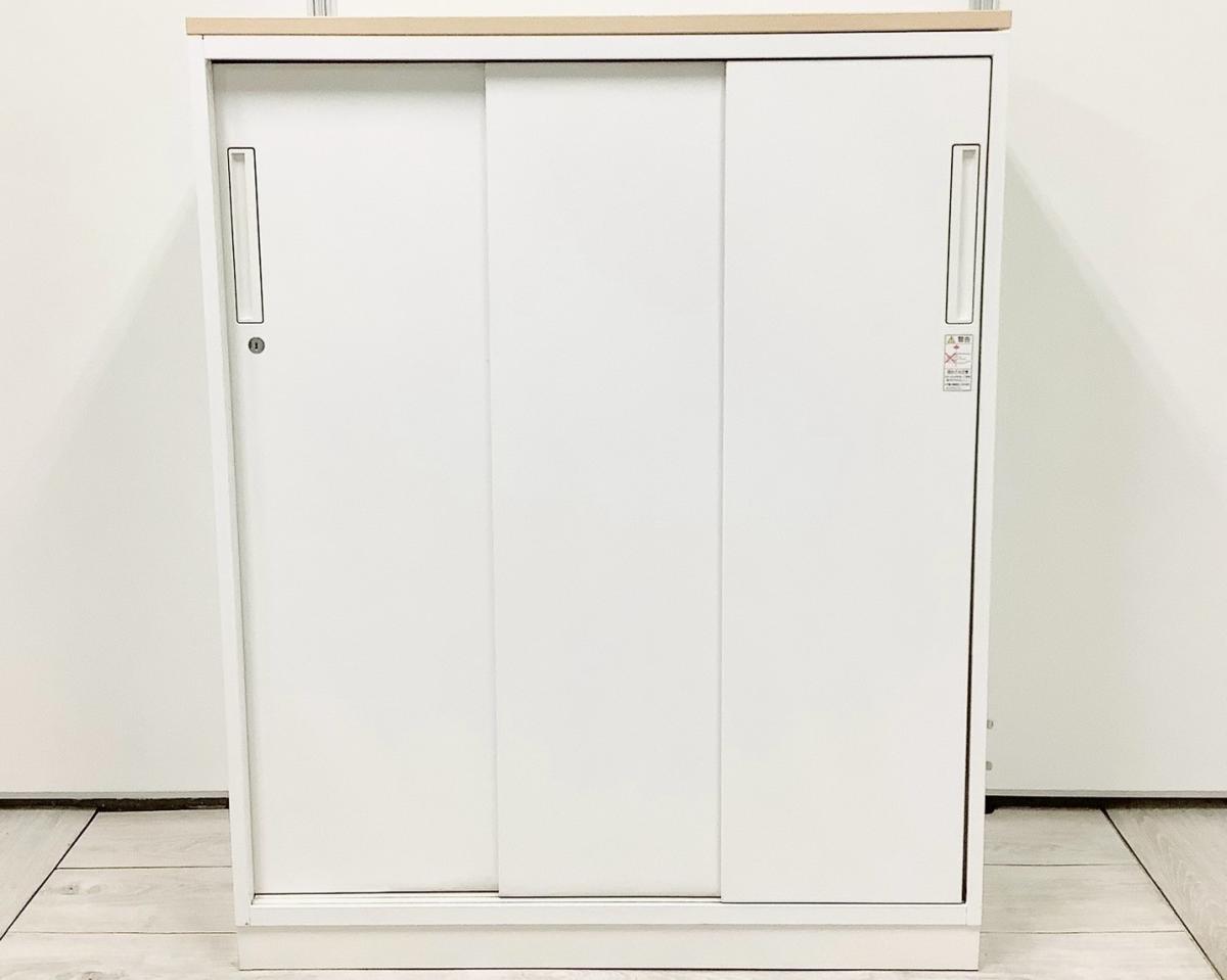 3枚引き戸書庫 コクヨ エディア 鍵付き(シリンダー錠) 天板付き 清潔感のあるホワイトキャビネット 導線を邪魔しないスライド式の扉
