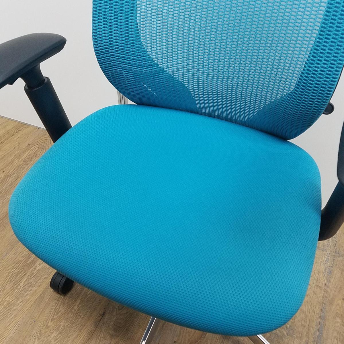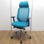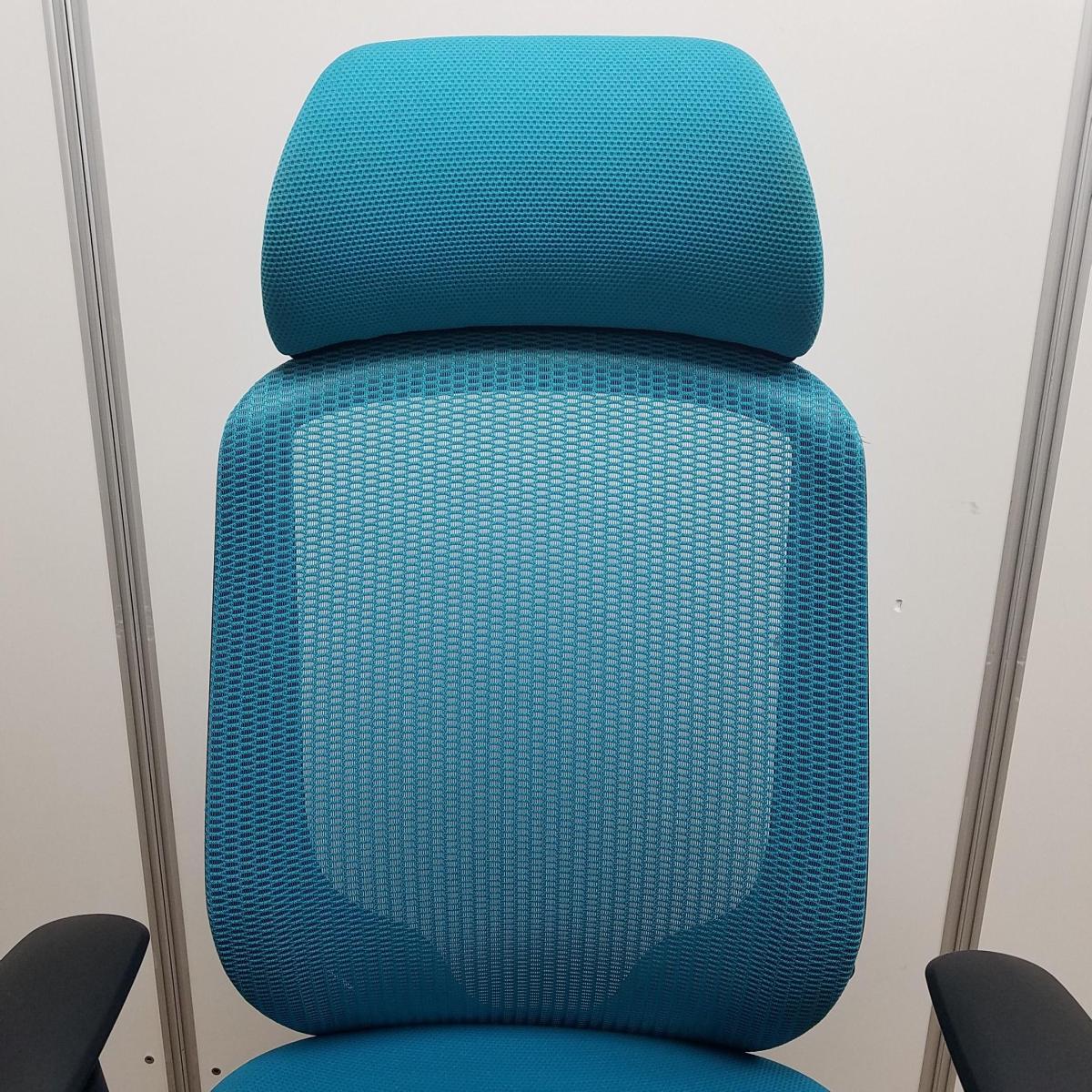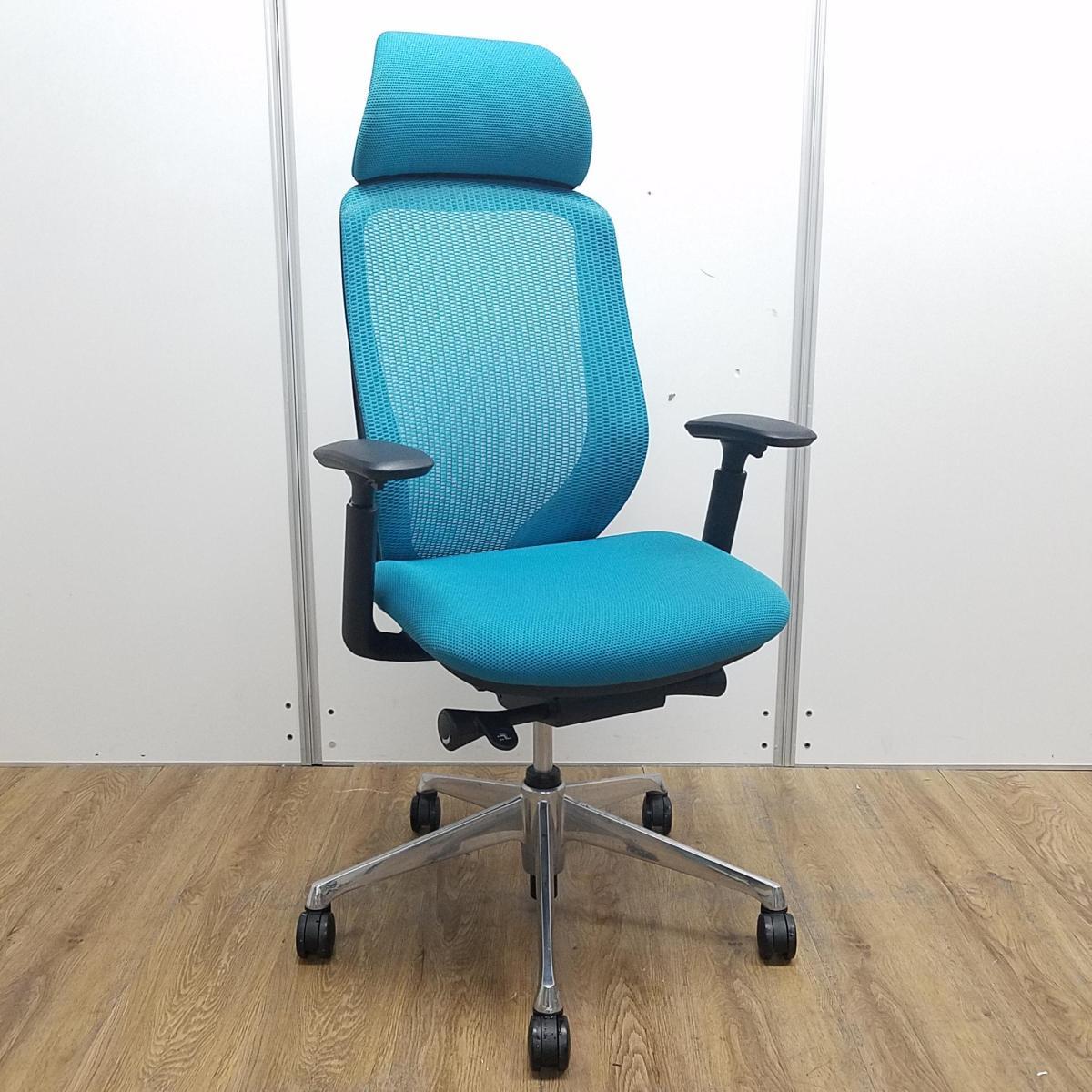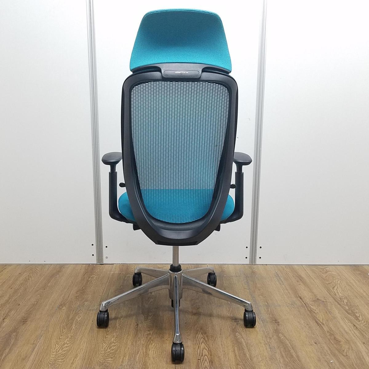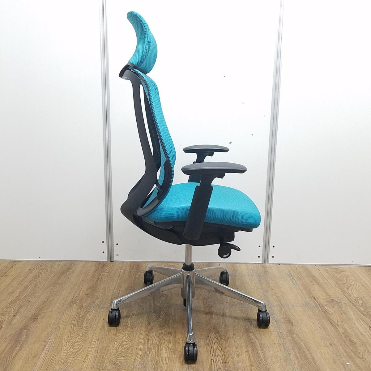【T9】オカムラ製 シルフィーシリーズ ブルーグリーン ヘッドレスト ポリッシュ脚 アジャストアーム※可動肘 肘付きハイバックチチェア!!- 京都東寺店