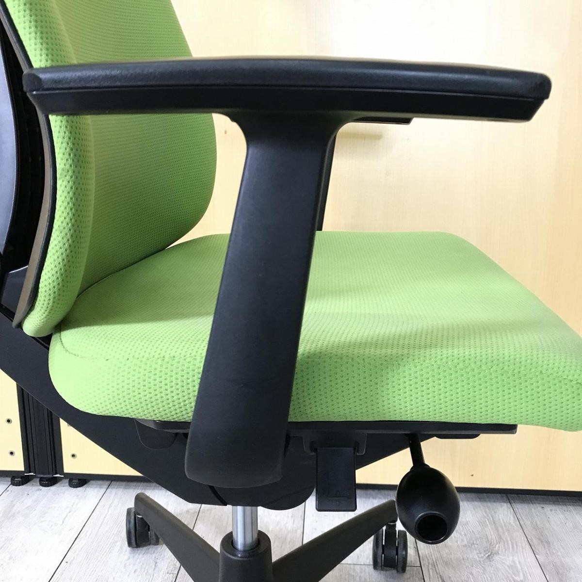 【関西倉庫在庫】コクヨ製 ウィザードシリーズ イエローグリーン 樹脂脚 固定肘 肘付きローバックチェア 【弊社使用欄: A01019819】