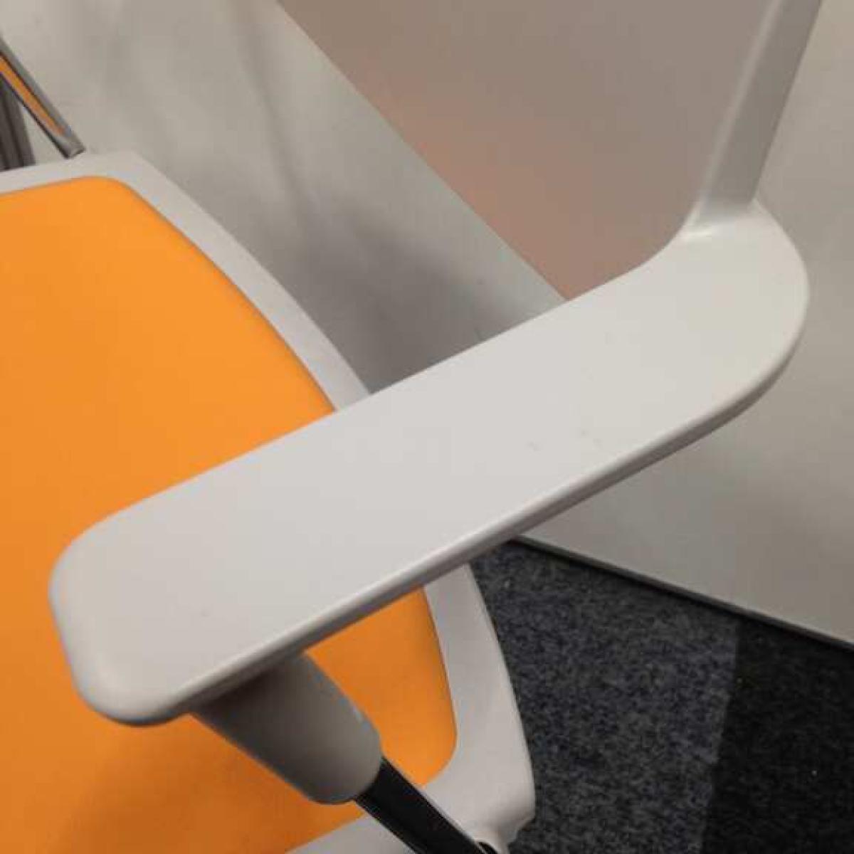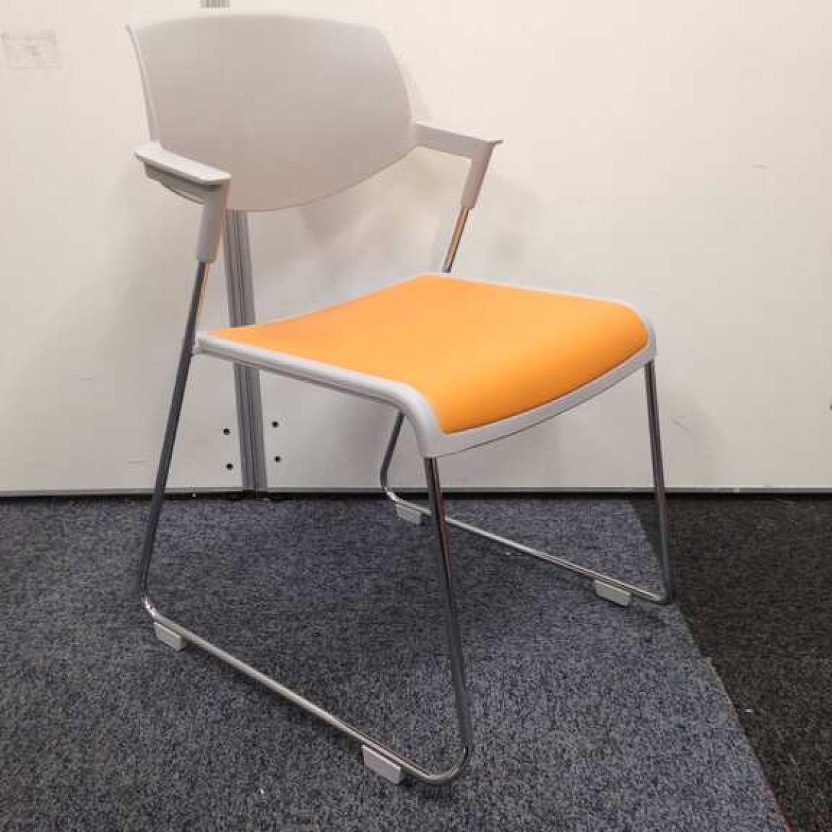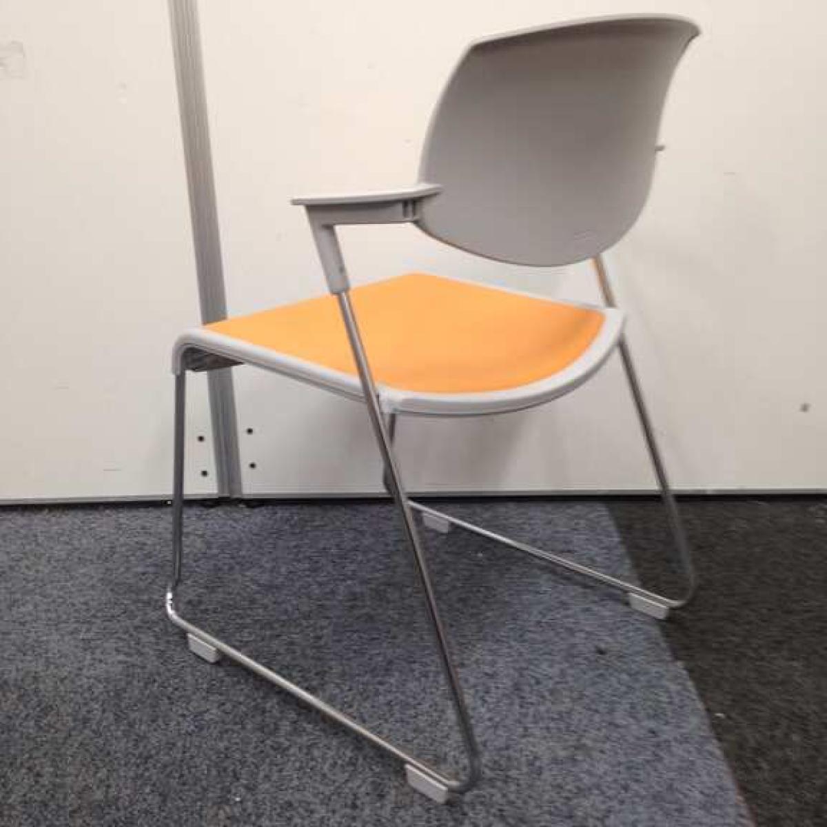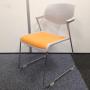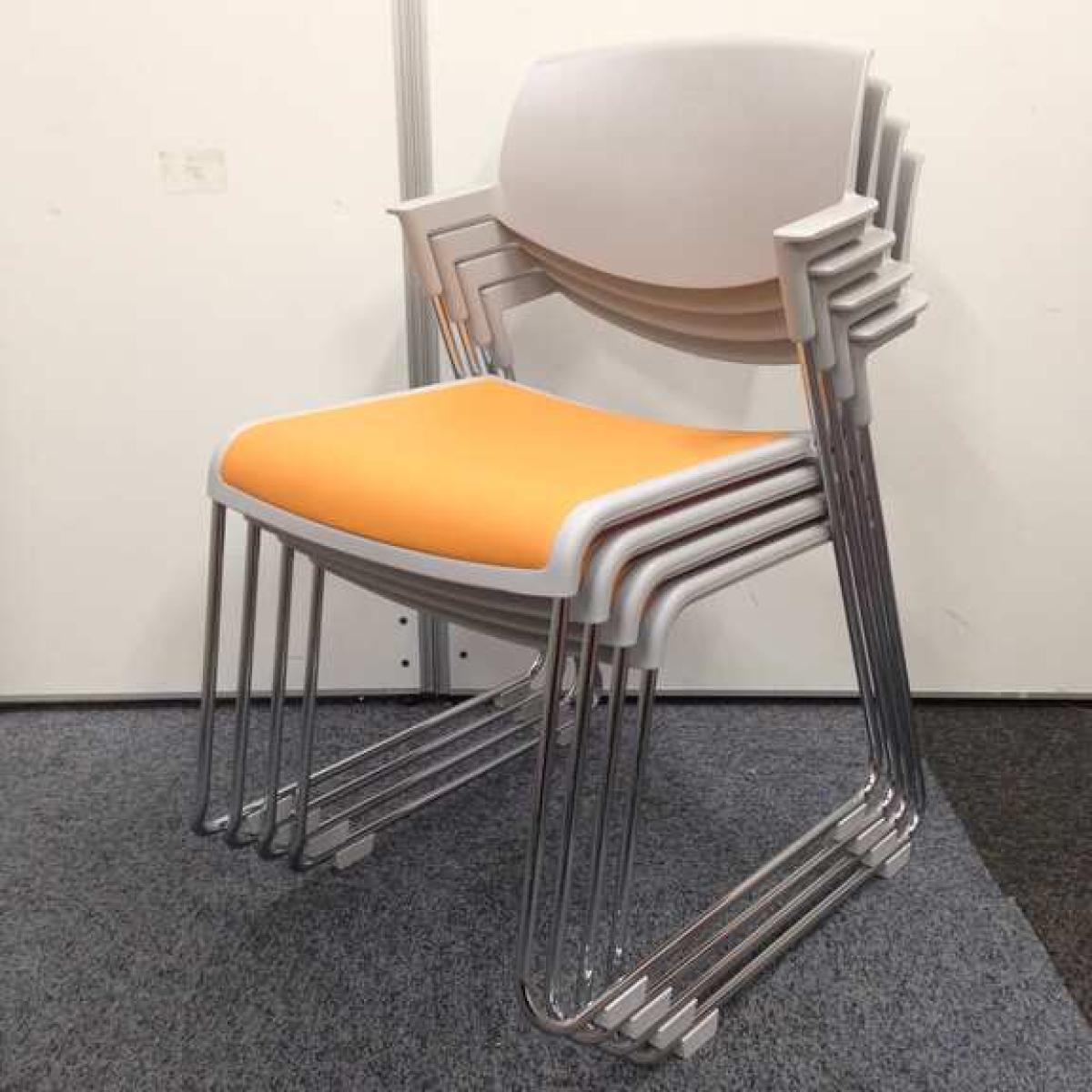 【在庫セール品・2脚限定】【T9】【K9】■コクヨ(KOKUYO)製 サティオシリーズ スタッキングチェア 肘付 ■固定肘 ■背面:グレーシェル/座面ビニール:タンジェリンオレンジ【肘一体型のシェルが身体への負担を軽減!】- 新大阪店