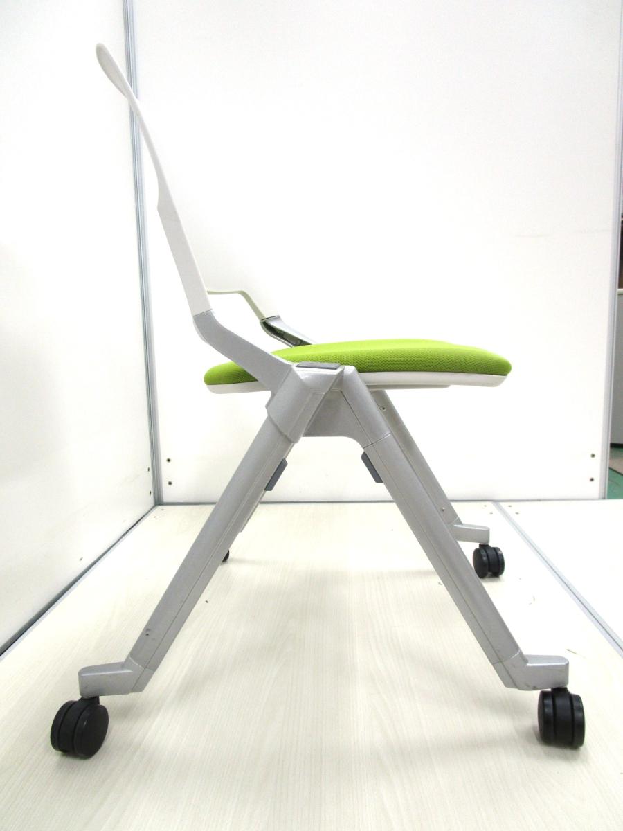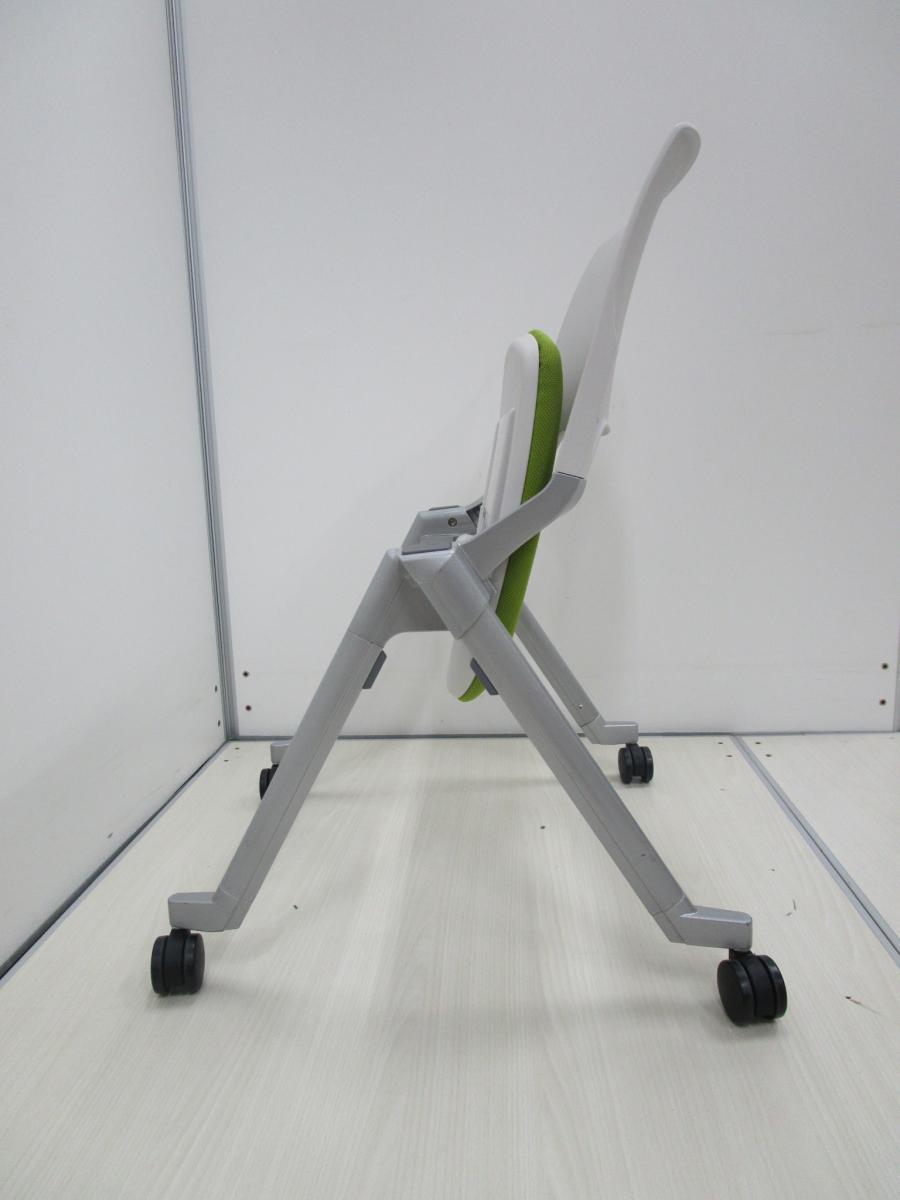■スタック収納可能!! ミーティングチェア■ホワイト+グリーンーカラーです!!{ネスタブル]【ON】【倉庫在庫品】- 在庫数