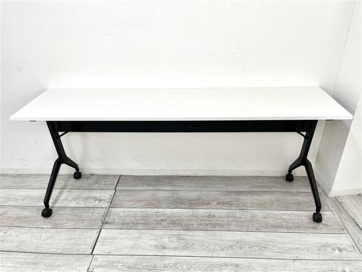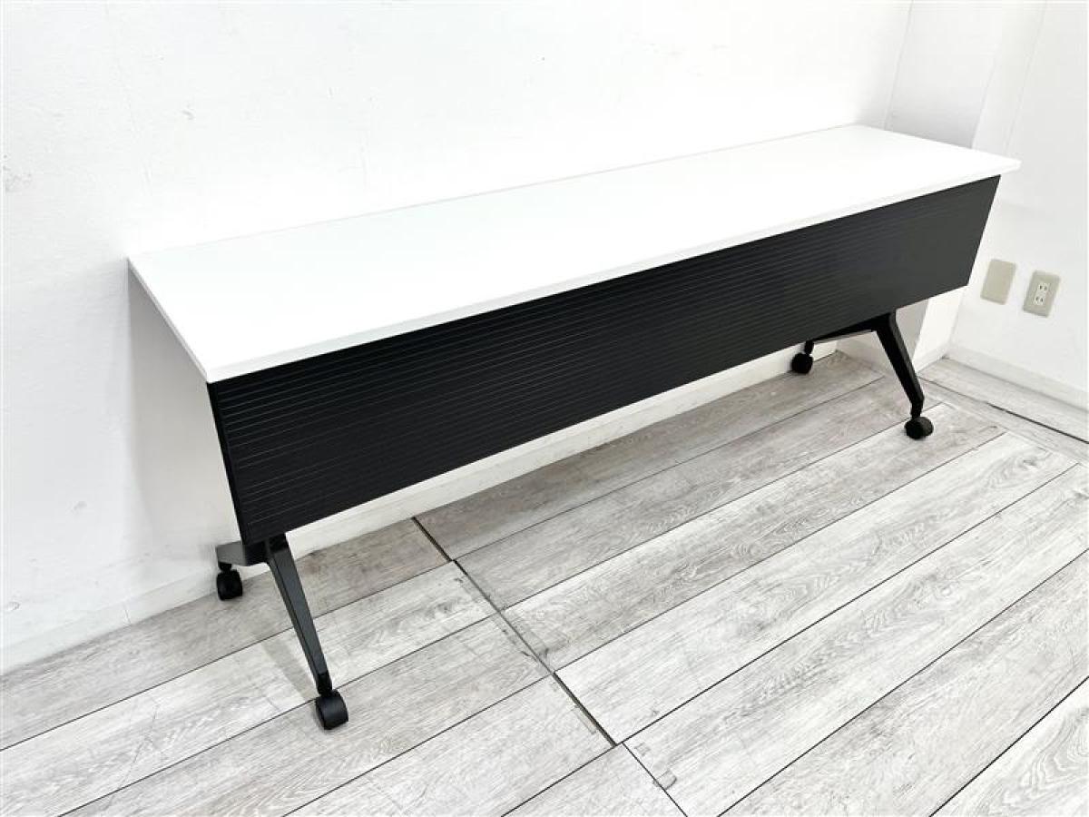 【定価約9万円】【3人用での使用にオススメ横幅1800mm奥行450mmサイズのスタックテーブルの入荷です】■内田洋行製 パラグラフ スタックテーブル ■ホワイト天板+ブラック脚、幕板在庫がある店舗一覧