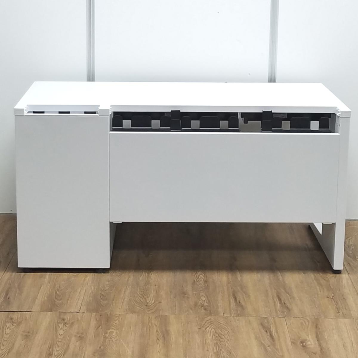 【訳あり品:配線カバー不足、天板欠け・キズ】コクヨ製 iS(アイエス) ホワイト W1400サイズ 上長席におすすめ! 収納量抜群の片袖机! ワークスペース広々! W1400サイズのホワイト天板 W1400片袖机!!※保障対象外品になります。- 京都東寺店