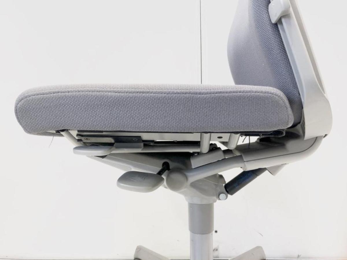 作業中の姿勢はもちろん、座ったまま背伸びをした時には、背もたれが倒れるだけでなく座面部分も連動して動く""アンクルチルトロッキング""機構で心地よく、オカムラの技術が光るチェアです。"