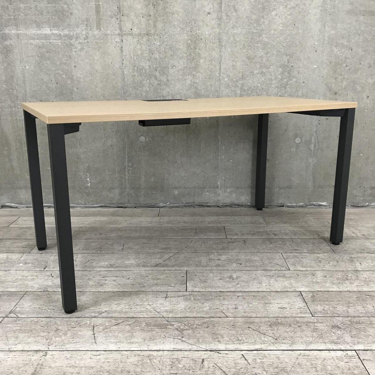 おしゃれな木目&ブラックの片面ワークデスク!ゆったり使用できる幅1400mm・便利なコンセント付き! ■イトーキ/アクトリンク(Act Link)/天板:ファインウォールナットL 脚:ブラック パーソナルテーブル(平机タイプ) 4本脚- 立川・八王子店
