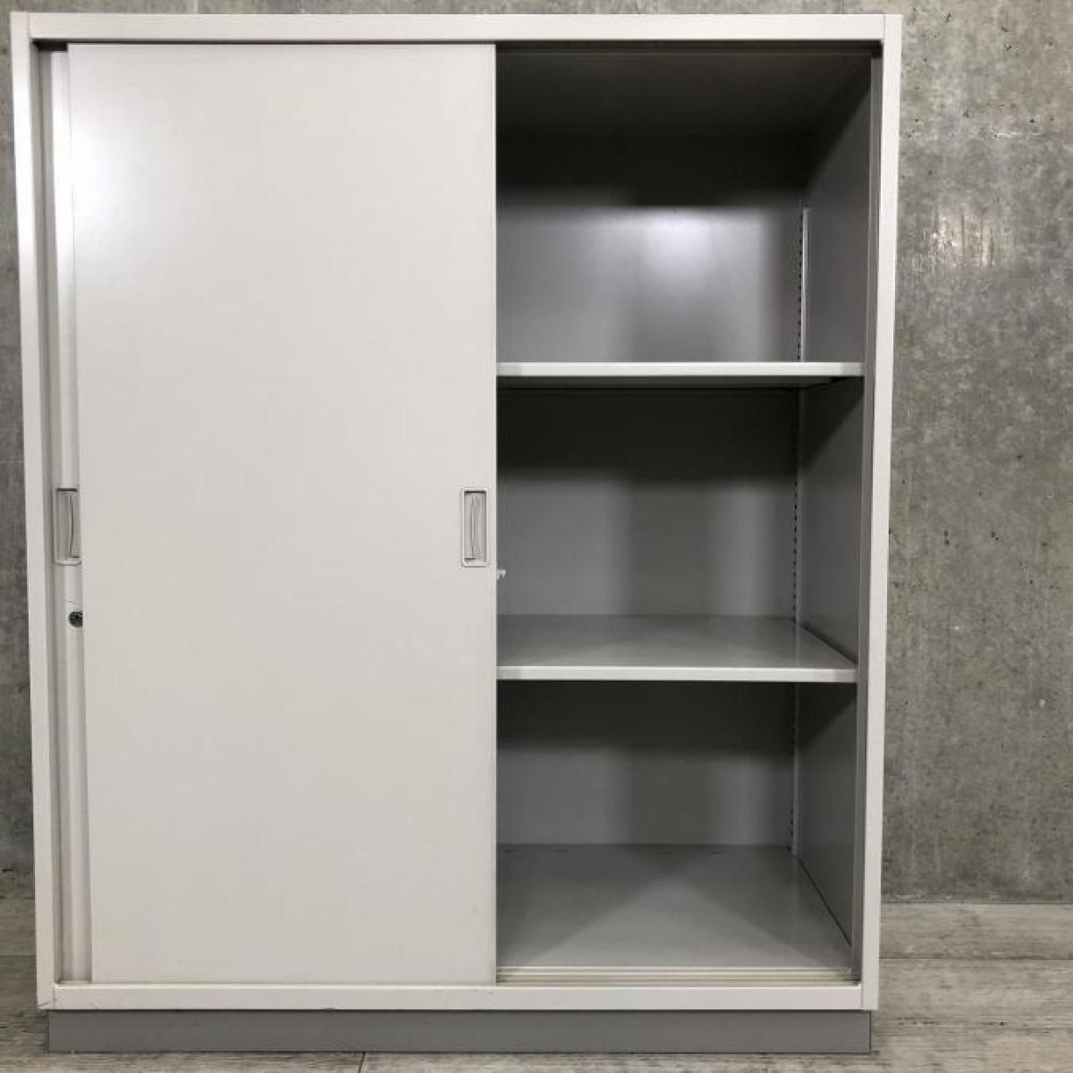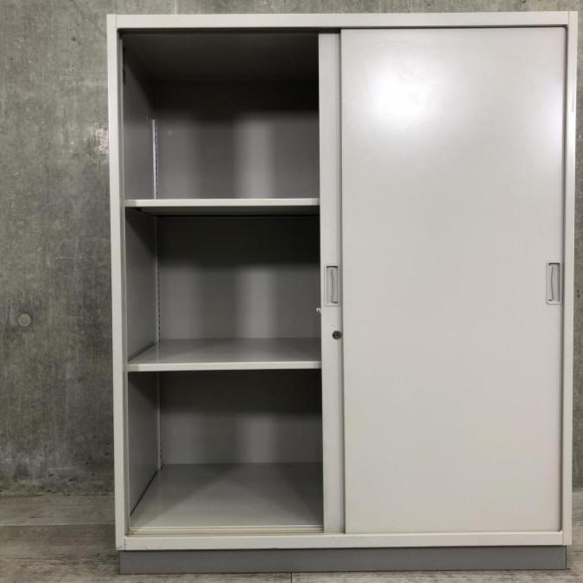 【定価約11万円】【スライド式なので開閉スペースに困りません!人気の3枚引き戸書庫!】■イトーキ (ITOKI)製 シンラインシリーズ 引き違い書庫 ローキャビネット 3枚引き戸 H1040㎜ ■グレー ■シリンダー錠 ※ベースなし