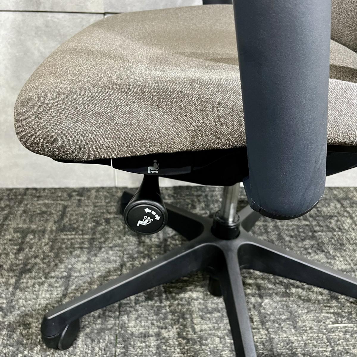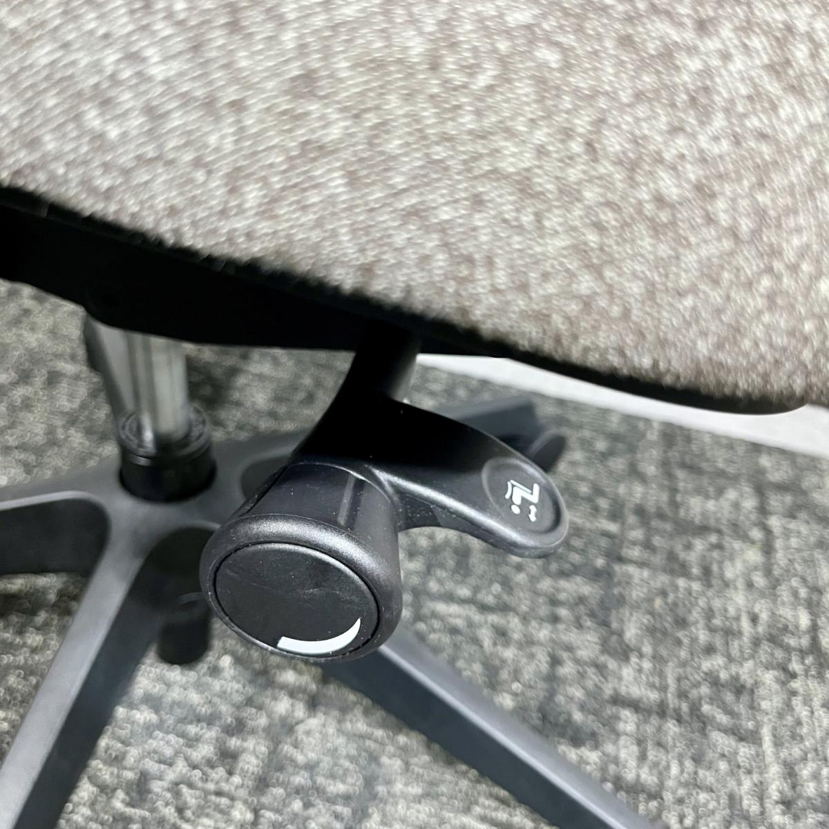 - 座面右下のダイヤル操作で、リクライニングの強弱調整が行えます。これまでのダイヤル式よりも、少ない回転数で、最弱?最強の調整が可能です。