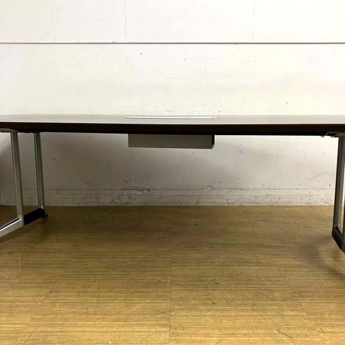 大型会議テーブル・ミーティングテーブル ウチダ ST-5200シリーズ ボートタイプ W2100×D1050 ブラウン天板 配線付き【AD】- 足立・葛飾店