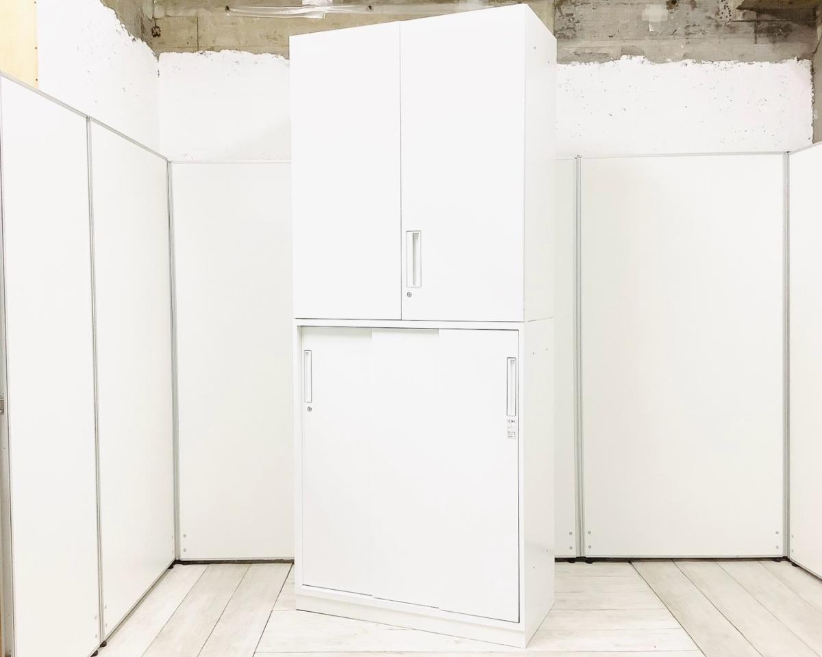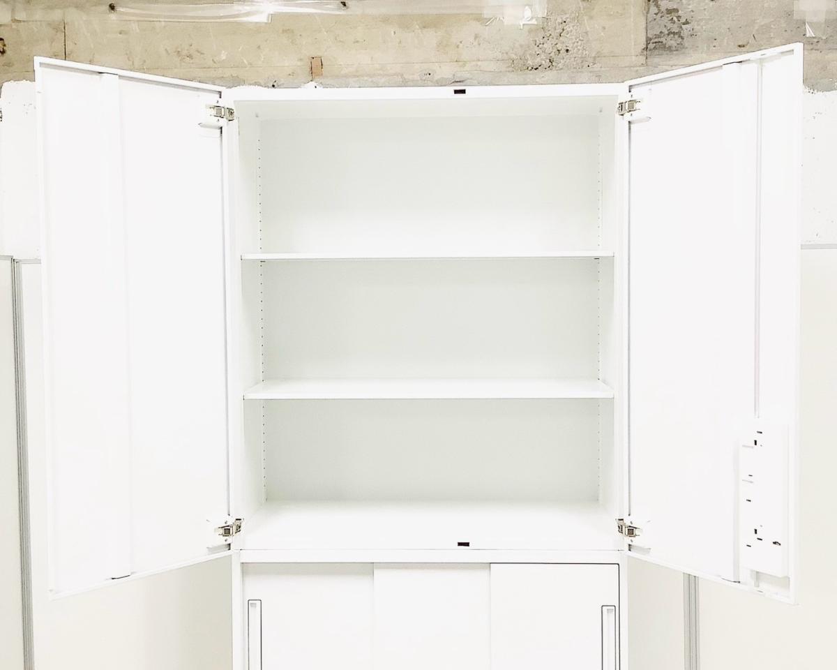 【オフィスの書類をまとめて整理!希少な両開き+引き違い書庫セットが入荷!!】■コクヨ(KOKUYO)製 エディアシリーズ 両開き+引き違い 書庫セット H2015㎜ ■2枚扉 ■シリンダー錠 ■ホワイト【AD】