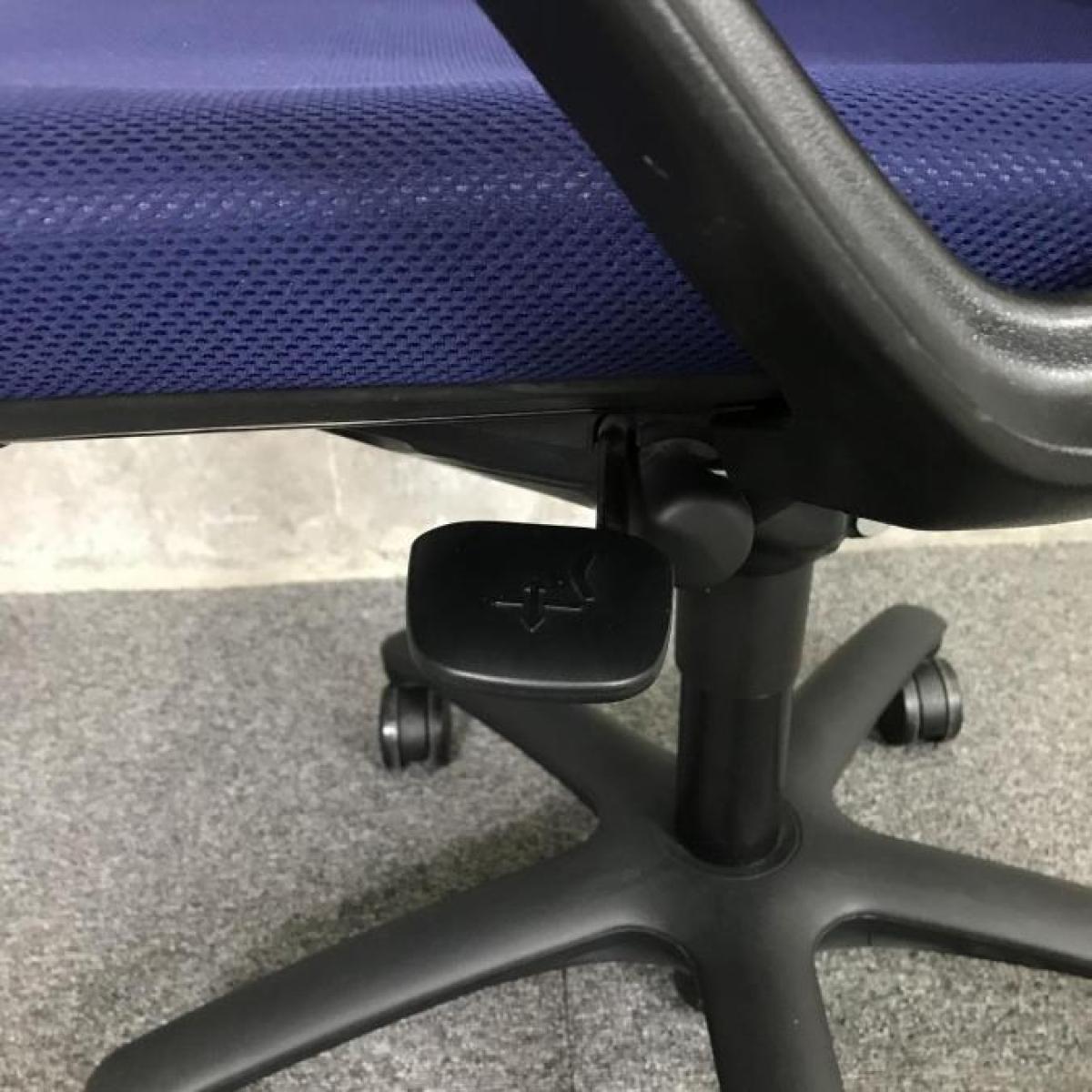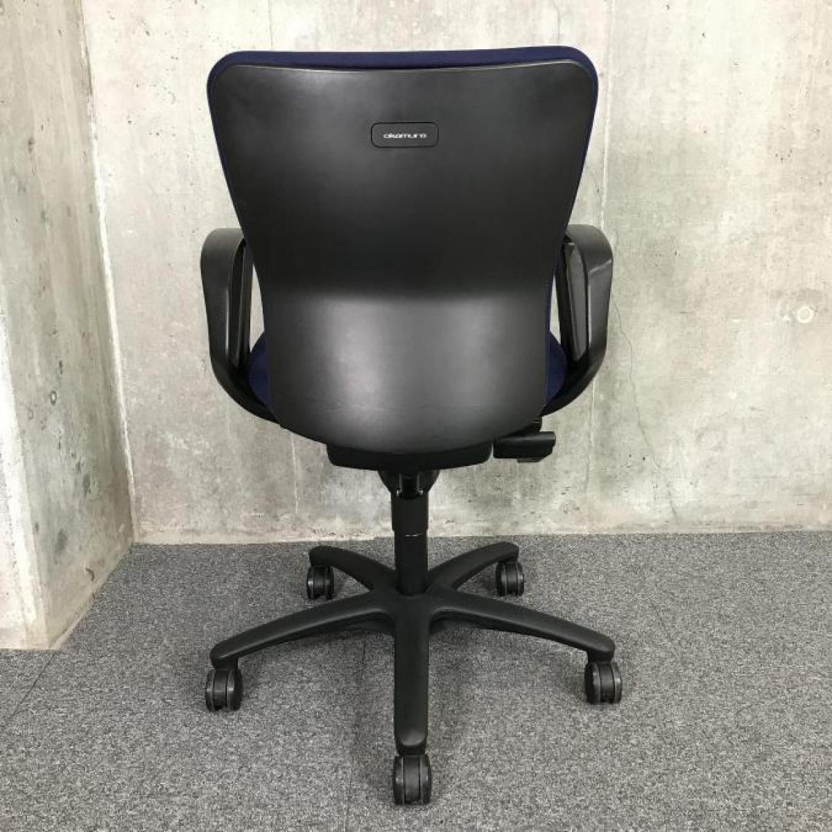 定番のオカムラ製のチェアが入荷!厚めのクッションで座り心地抜群! ■オカムラ/カロッツァ/ブルー ブラックシェル リング肘