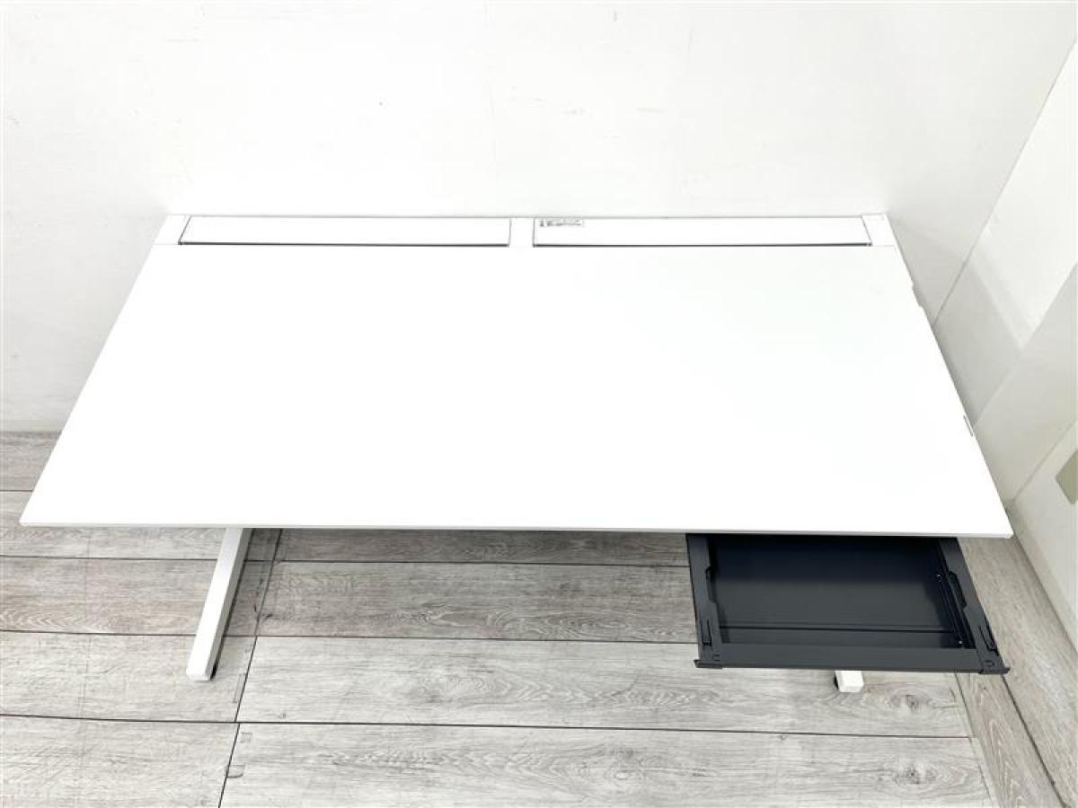 コクヨ iS 平机(スタンダードテーブル) W1400サイズ 配線収納に配慮した設計がポイント ホワイト 引き出し付き