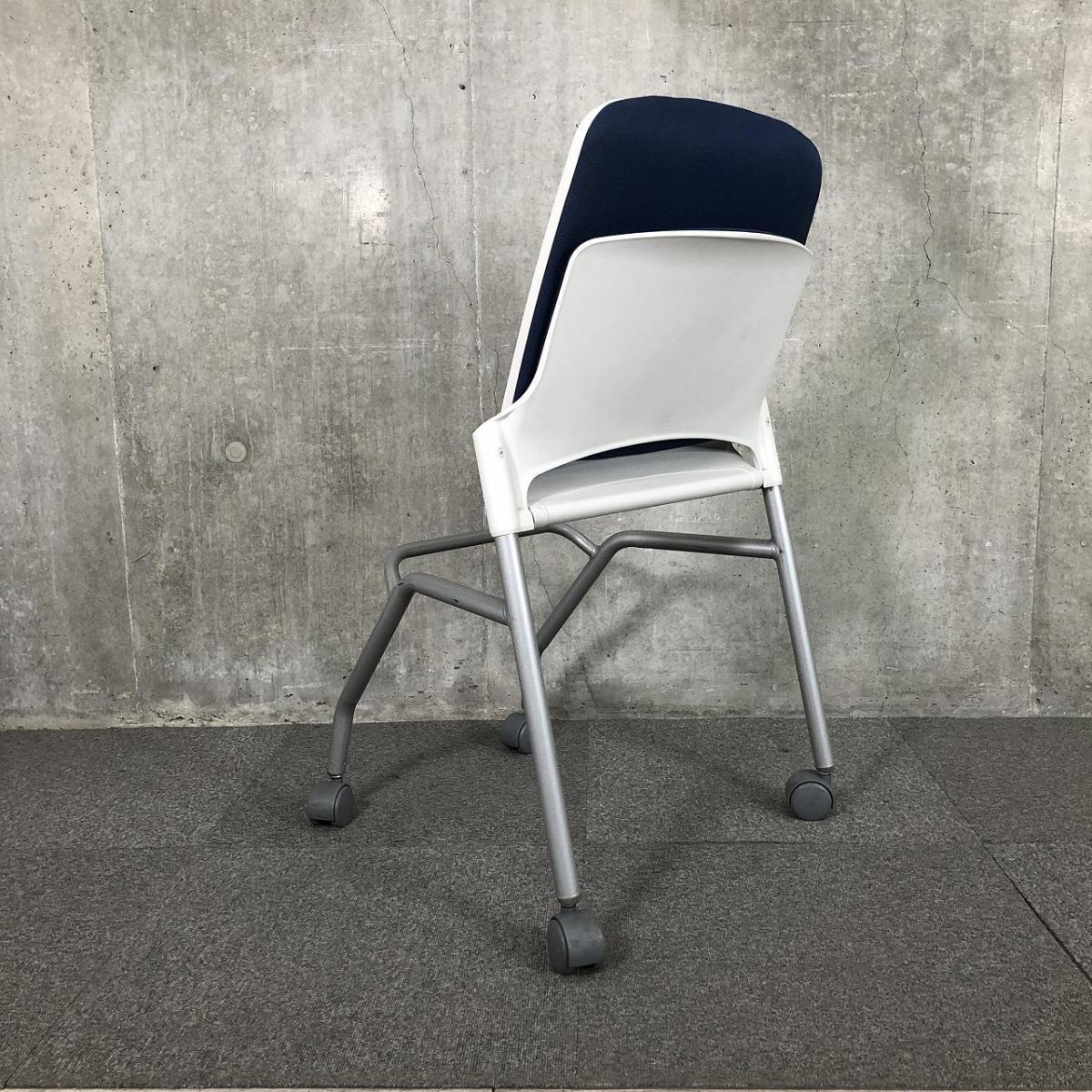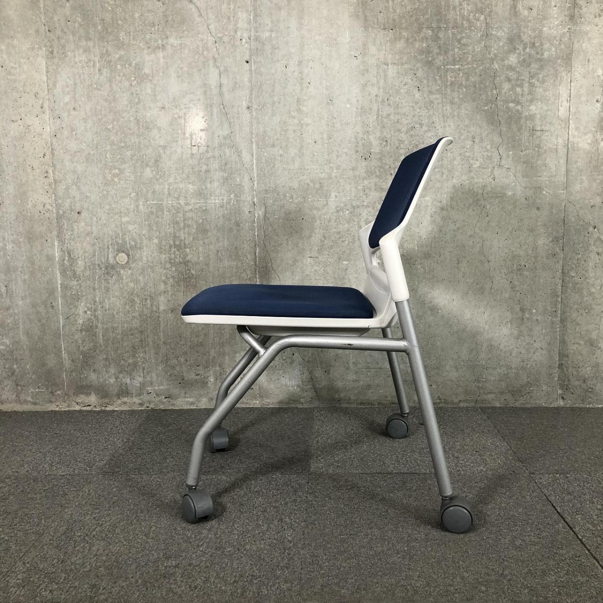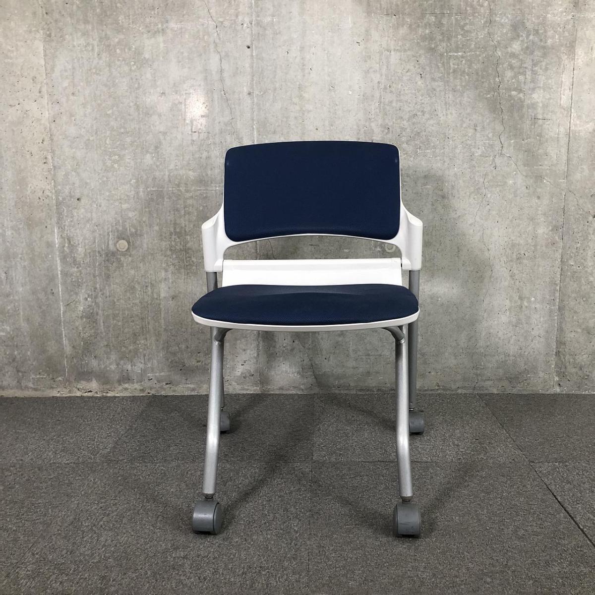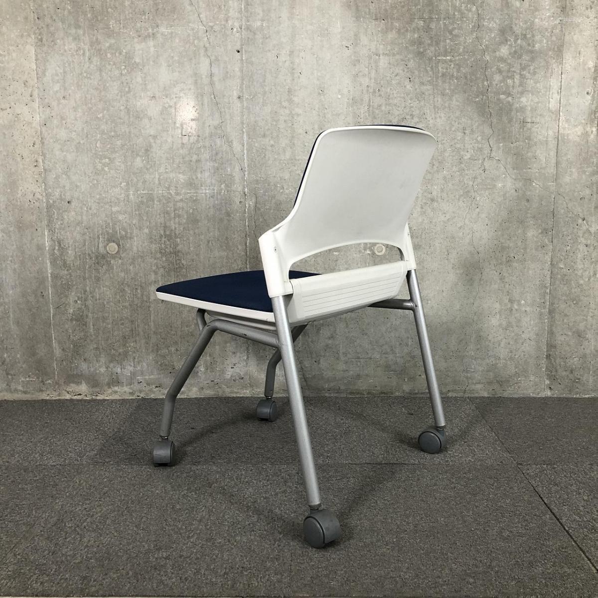 【キャスター付きで使いやすい!ミーティングに最適!】■ウチダ(UCHIDA)製 MF-180シリーズ ネスティングチェア ミーティングチェア ■キャスター付き ■ブルー×ホワイトシェル