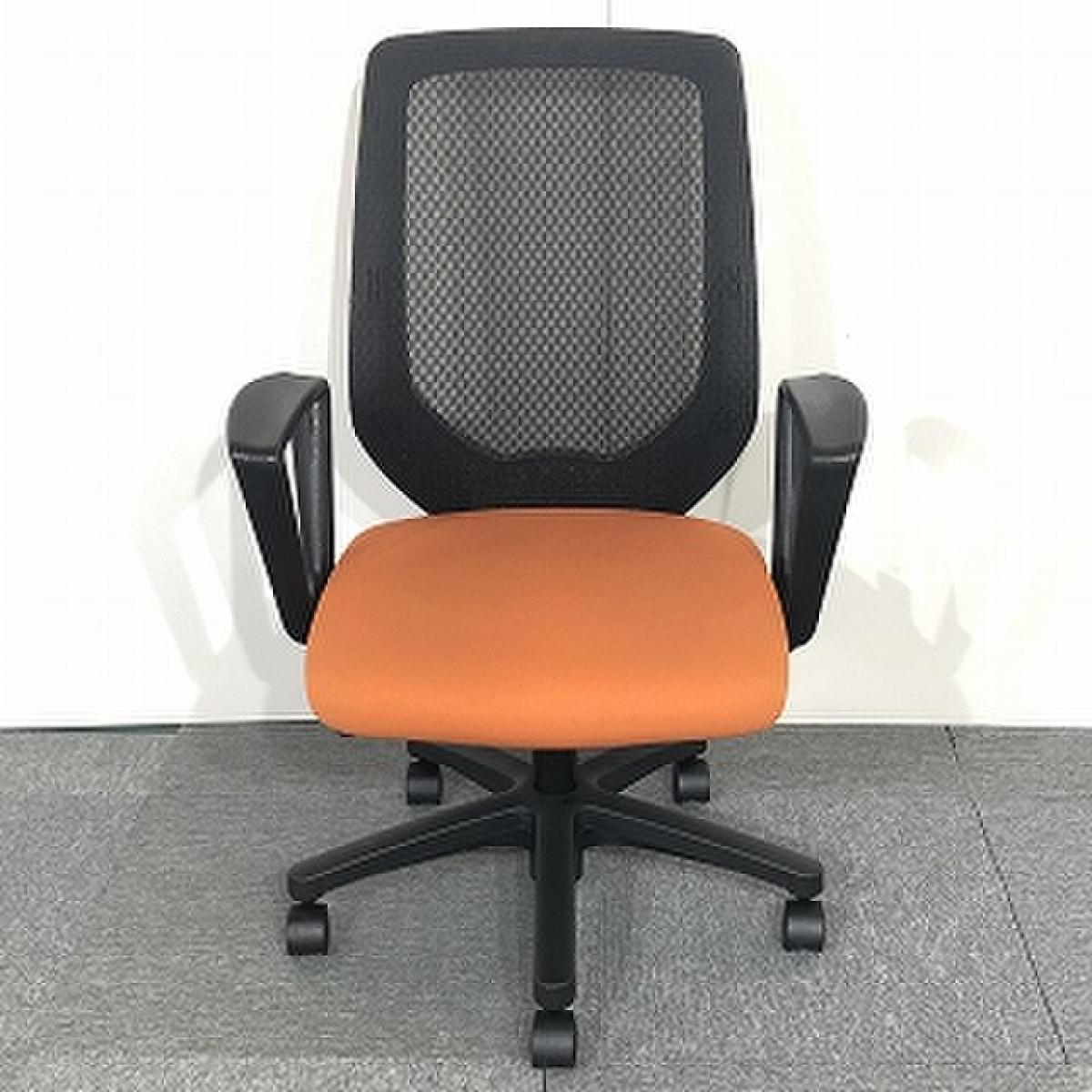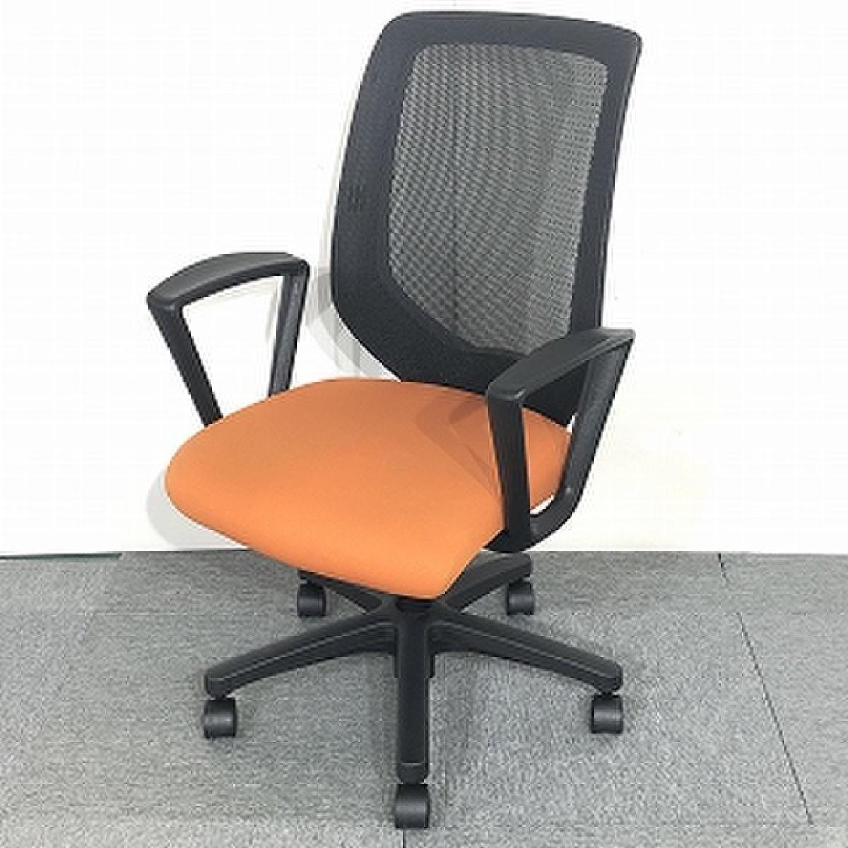 【倉庫在庫品】【5脚限定】 イトーキ コルト 座面オレンジ 肘置き付き メッシュ背面 オフィスバスターズ 梅田本店【K10】- 大阪梅田本店