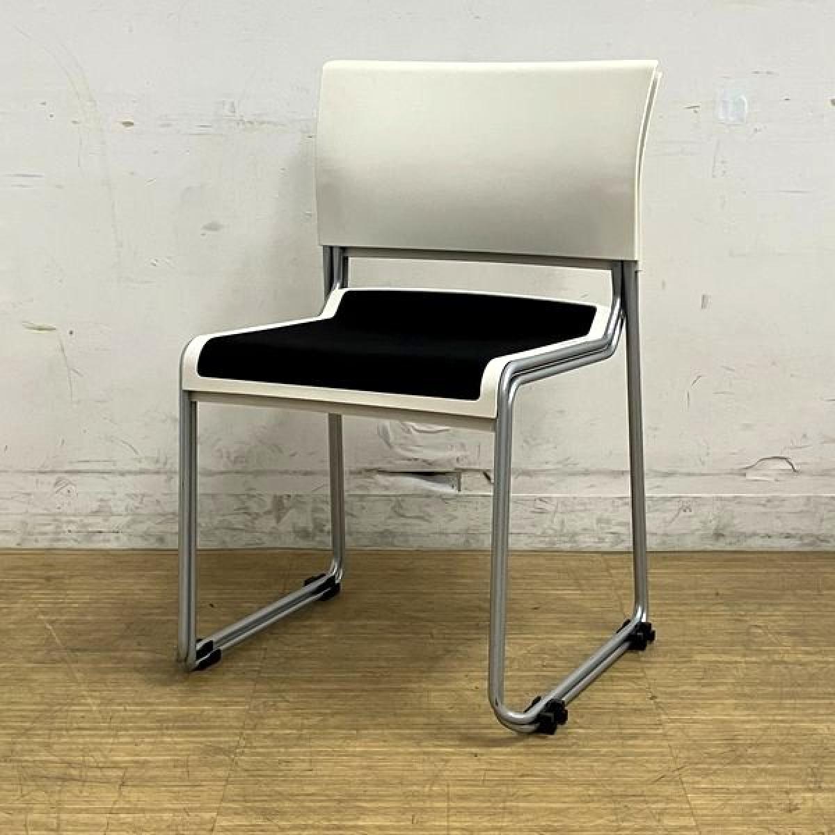 イトーキ ルベック スタッキングチェア 背ヌードタイプ 背:ホワイト(樹脂) 座:ブラック(クロス) 脚:シルバー- 名古屋千種店