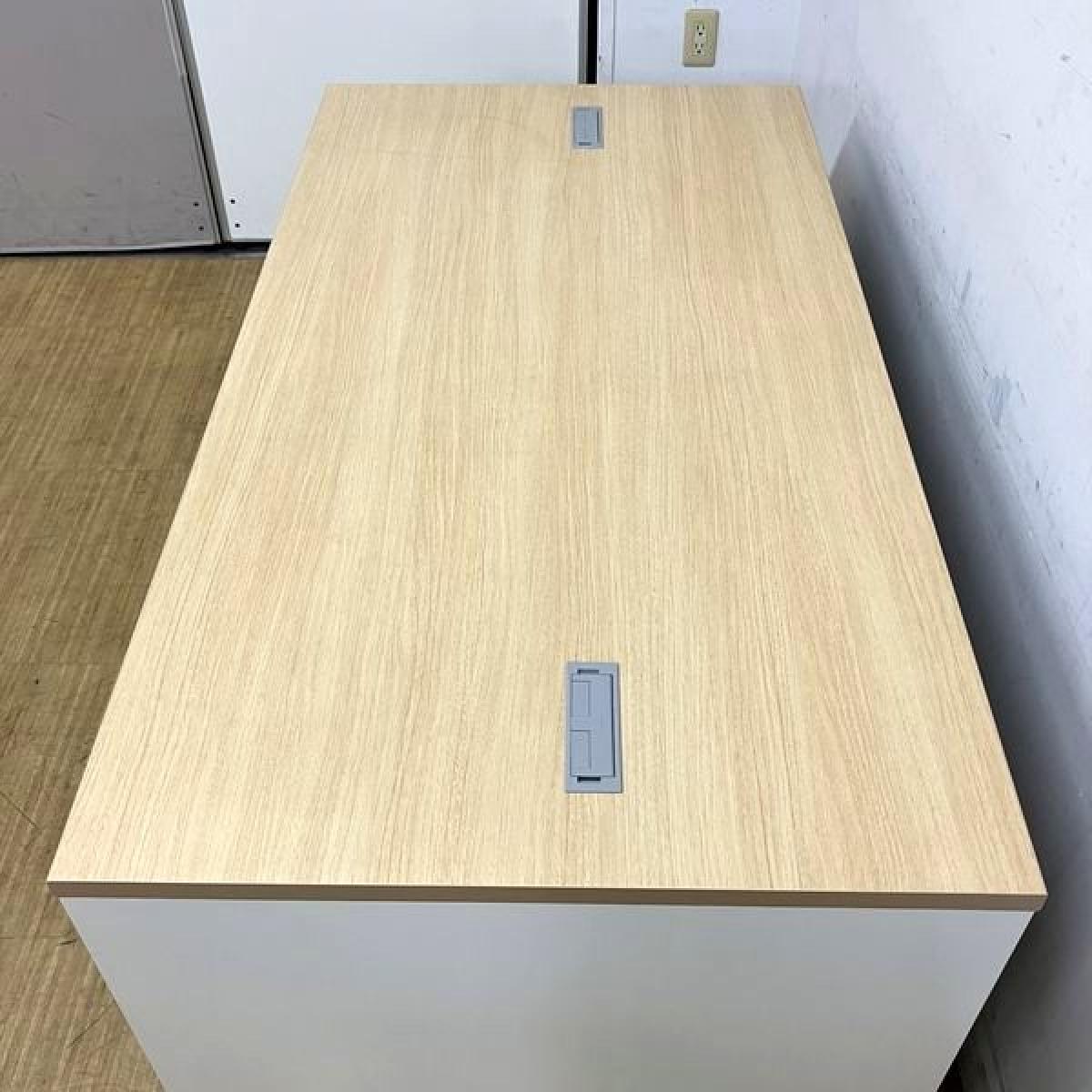明るいナチュラルの天板に清潔感のあるホワイトの脚の組み合わせです