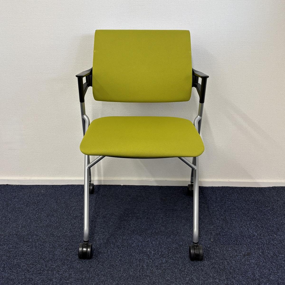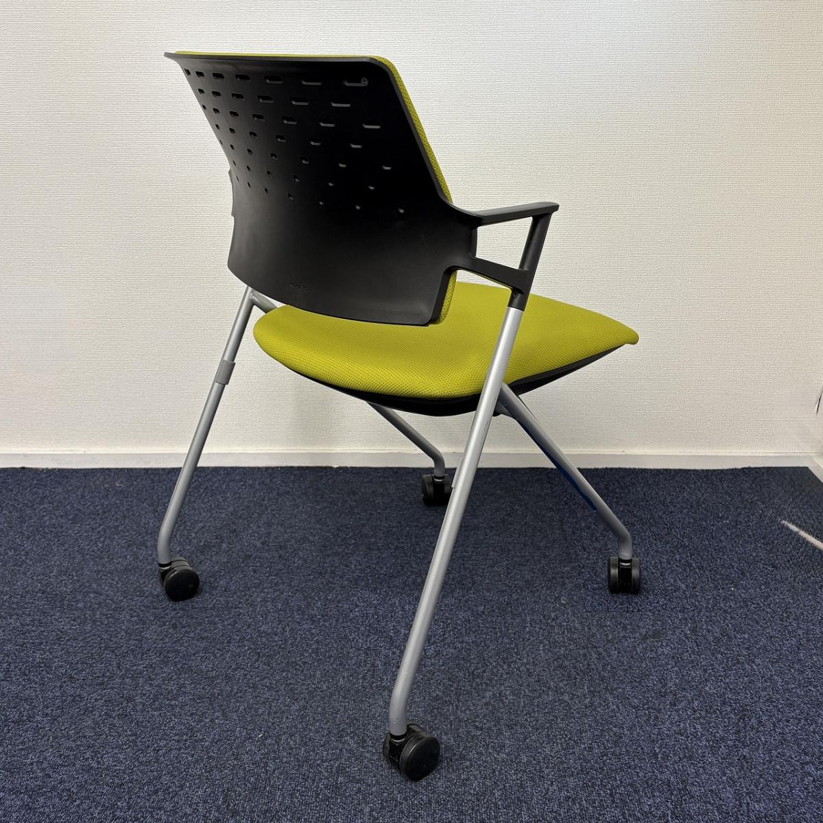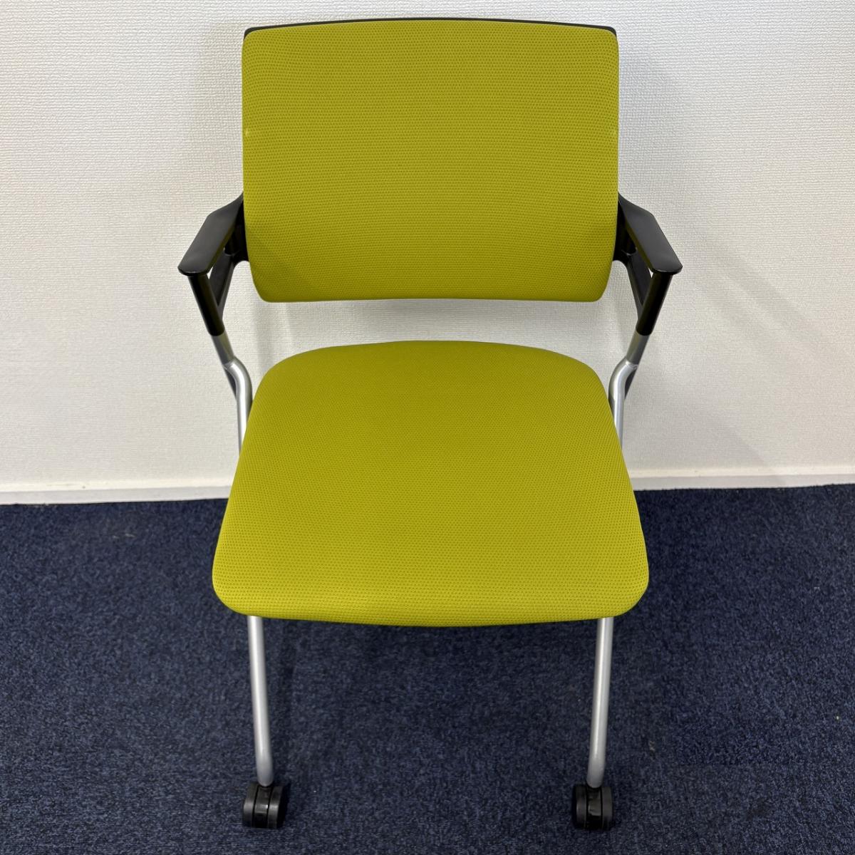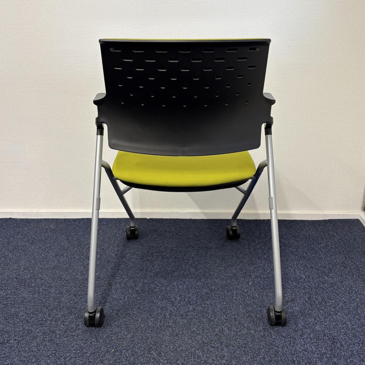 【定価約5万円】【使わない時は重ねて収納!肘付きで長時間の会議も安心の座り心地】■コクヨ(KOKUYO)製 ピエガシリーズ ネスティングチェア ミーティングチェア ■固定肘/キャスター付 ■背クッションタイプ ■グリーン×ブラックシェル- なんば日本橋店