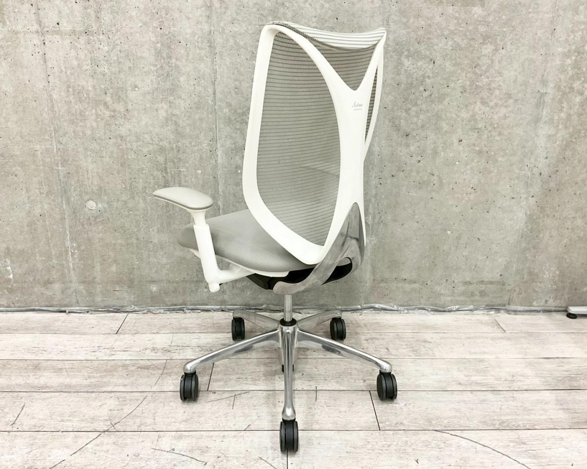 入替セール品につきお値下げ!【オカムラの高級チェアが6脚まとまって入荷!】オカムラ サブリナ ハイバック アジャストアーム ホワイトボディ アルミフレーム 背カラー:ライトグレー 座カラー:ライトグレー 【有名なシルフィーチェアと同じ前傾チルト機能が備わっています!】