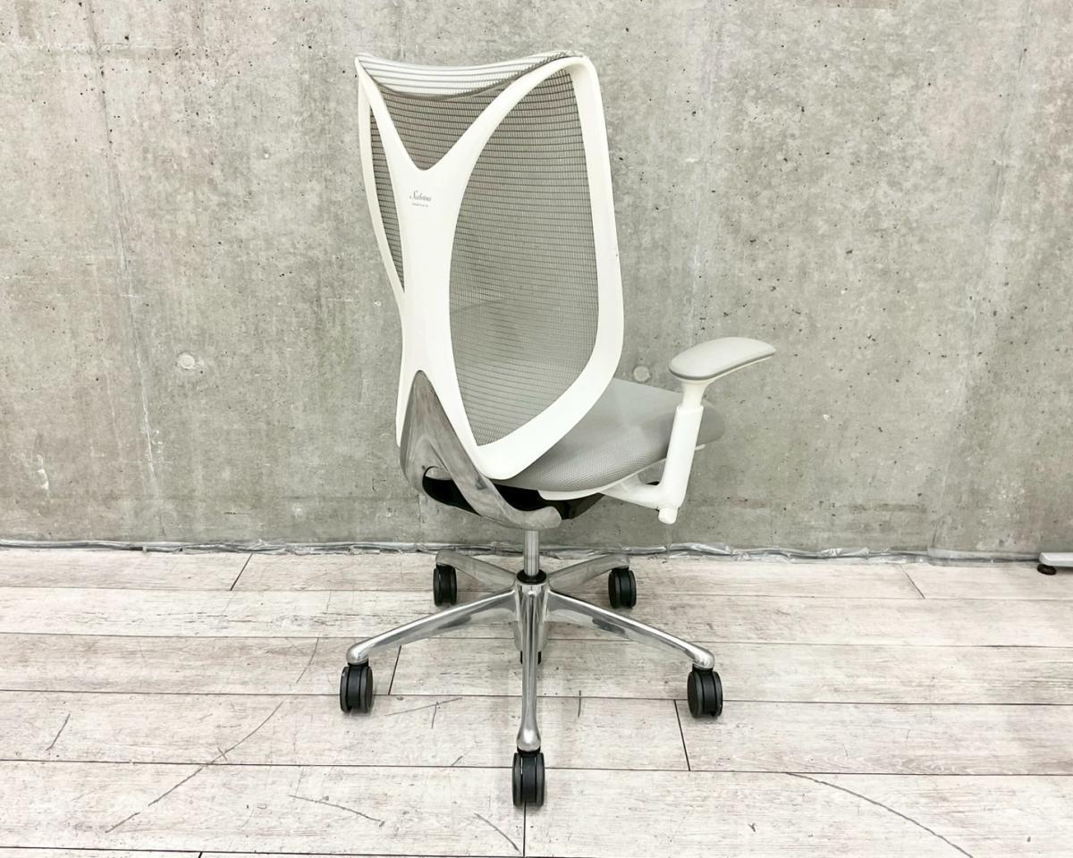 【前傾チルト付!流れるような美しいフォルムの最高級メッシュチェア!】■オカムラ(okamura)製 Sabrina(サブリナ)チェア 肘付ハイバック ■アジャストアーム(可動肘) ■背面メッシュ ■ライトグレー × ホワイトフレーム