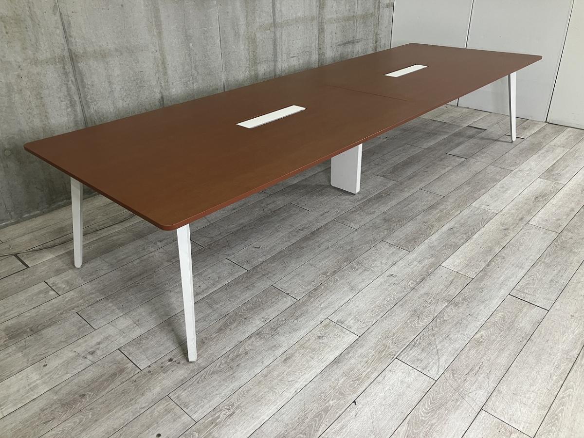【高級感のあるミーティングテーブル!大切なお客様を招くお部屋にも!】■ウチダ(UCHIDA) レムナシリーズ(LEMNA) 大型テーブル 会議用テーブル ■W3600×D1200㎜ ■ブラウン ■配線口有り【打ち合わせや応接などにピッタリ!】- 茨城南店