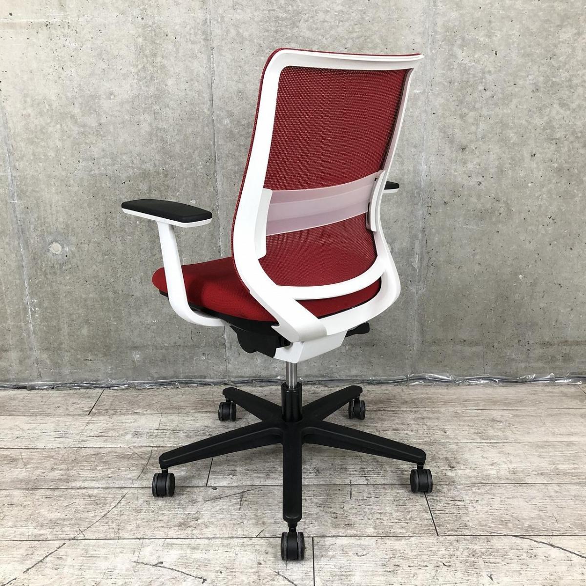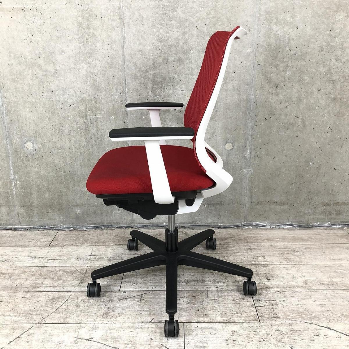 【テレワークにも最適!快適な座り心地と充実機能】■コクヨ(KOKUYO)製 ミトラ(Mitra)チェア 肘付き ローバック ■背面メッシュ ■固定肘 ■ランバーサポート付き ■色:カーマインレッド × ホワイトシェル×脚ブラックサーキュラーバリューCO2削減量の算出について
