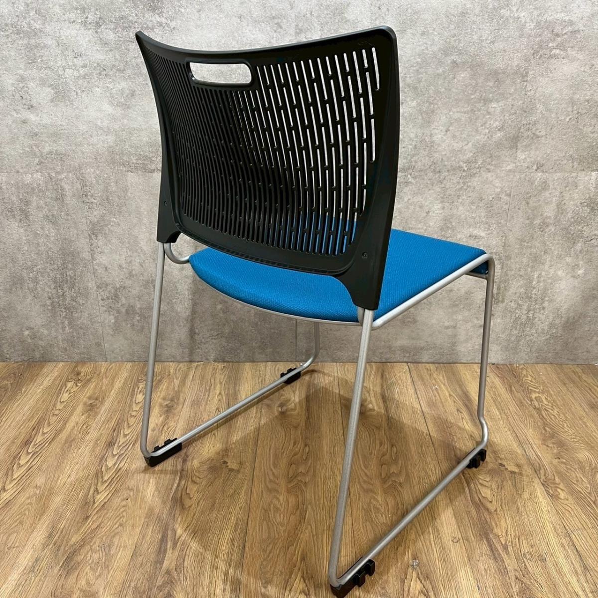 【重ねて収納可能!さわやかなカラーとシンプルデザイン!】■オカムラ製 レーテ スタッキングチェア ミーティングチェア ■キャスター付き ■座面ブルー×背面ホワイト【2412】弊社使用欄【A00990049】