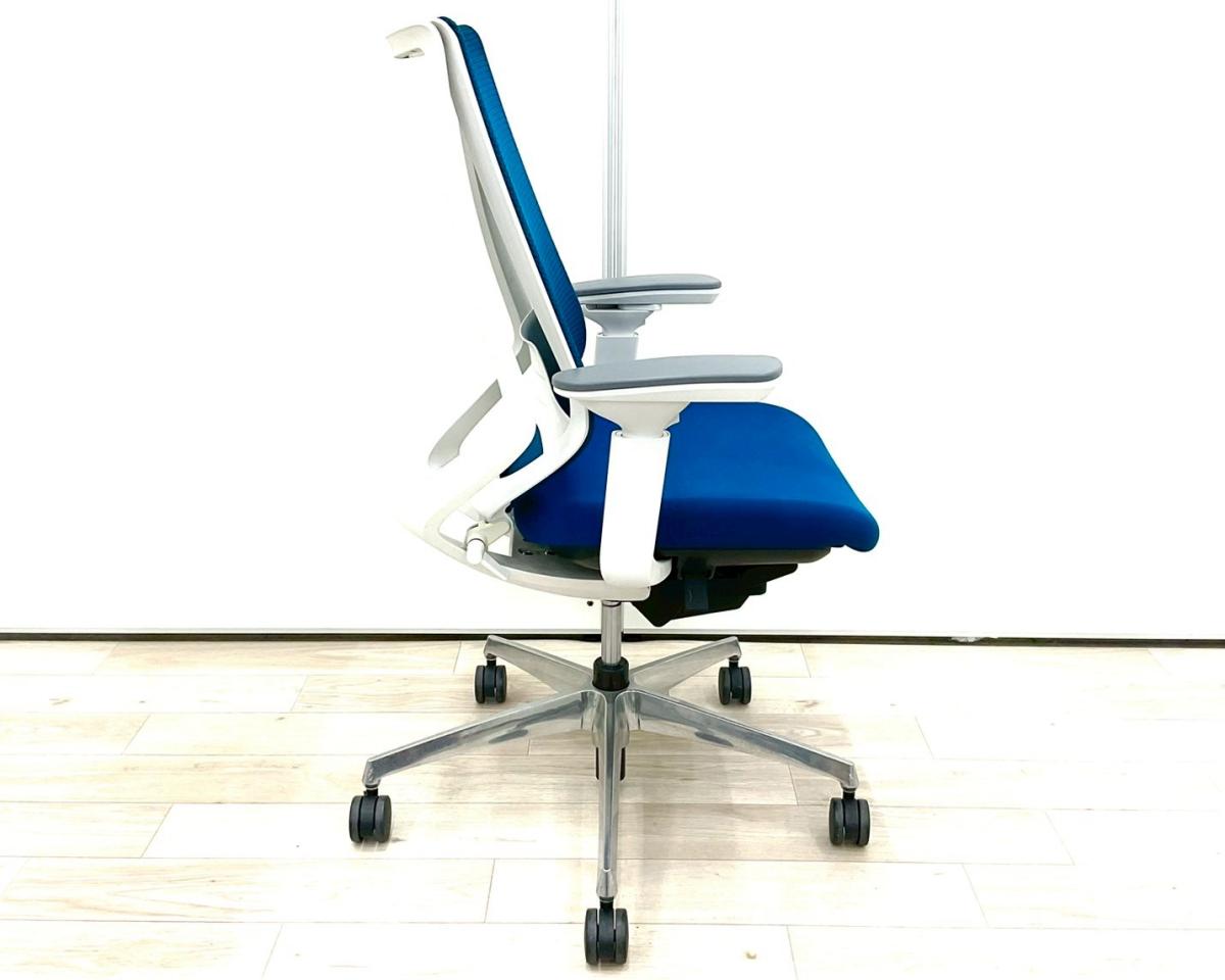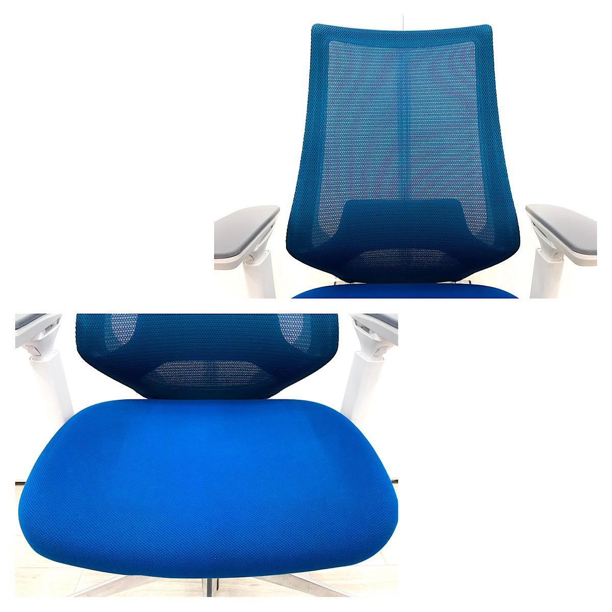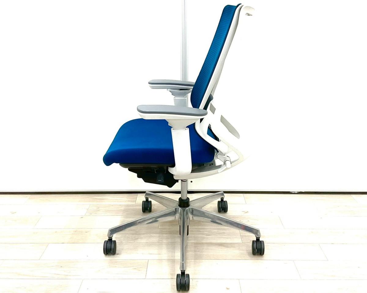 ■KOKUYO/コクヨ ■デュオラ(Duora)チェア ■プルシアンブルー×ホワイトシェル×ブラック脚 ■肘付き/可動肘 ■ハイバック ■背面/メッシュ 座面/布 ■コートハンガー付き ■オススメ/人気/定番商品 【弊社使用欄:A01040309 K】【ID】