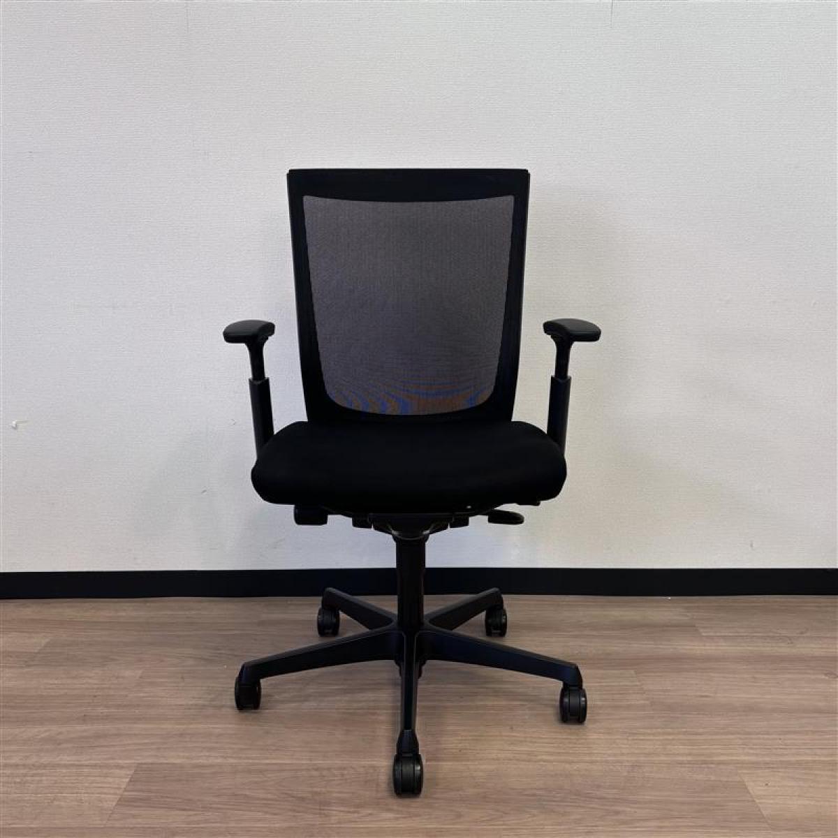 【在庫入替セール】【4脚限定】【背中全体をサポートするハイバックタイプのメッシュチェア!】■okamura(オカムラ)製 エスクード(ESCUDO)チェア 肘付き ハイバック 背面メッシュ ■可動肘 ■色:ブラック【K10】