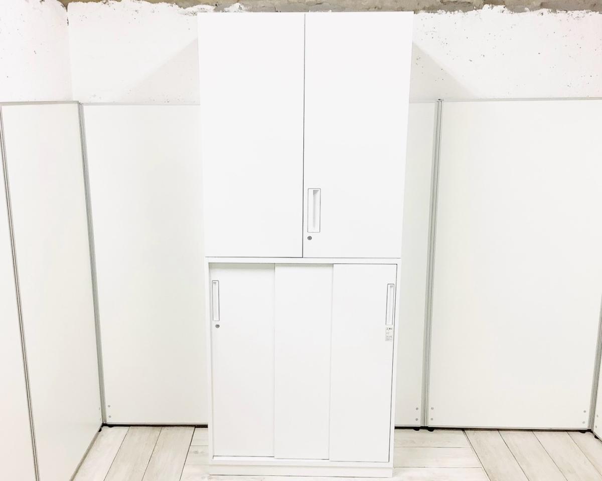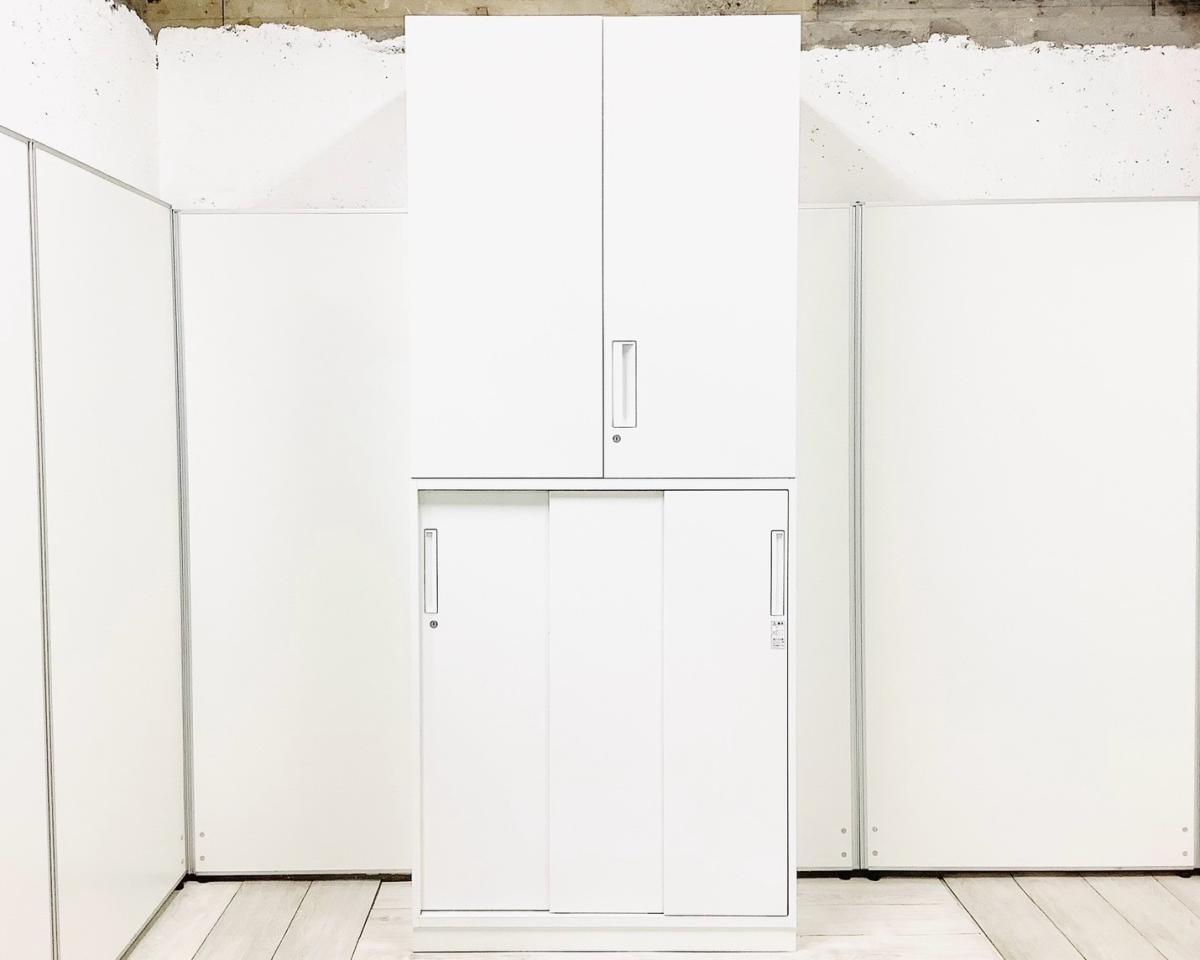 【オフィスの書類をまとめて整理!希少な両開き+引き違い書庫セットが入荷!!】■コクヨ(KOKUYO)製 エディアシリーズ 両開き+引き違い 書庫セット H2015㎜ ■2枚扉 ■シリンダー錠 ■ホワイト【AD】