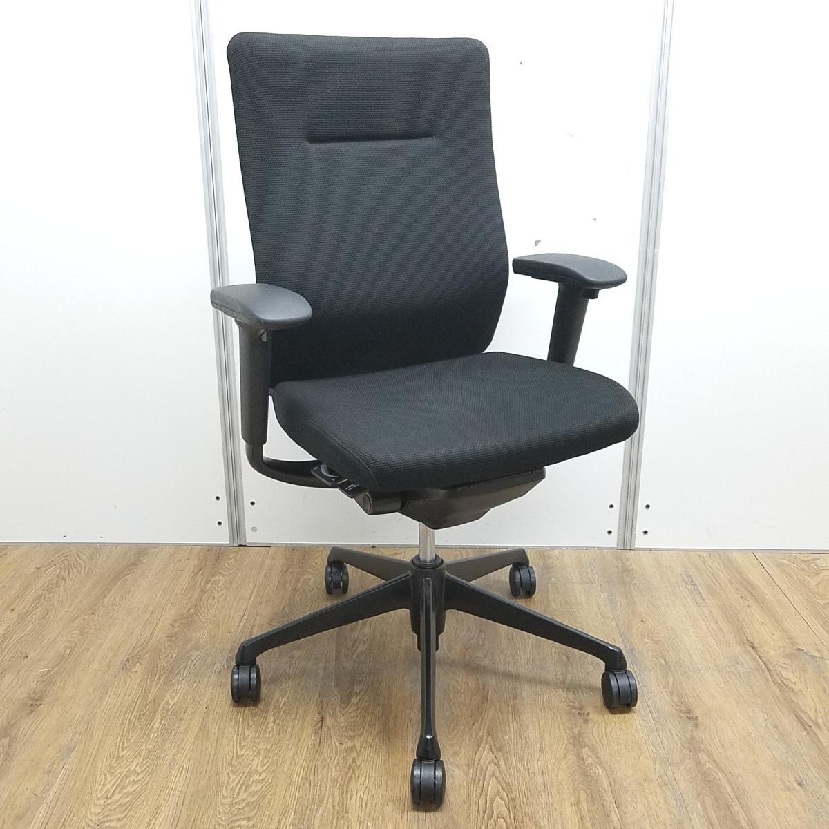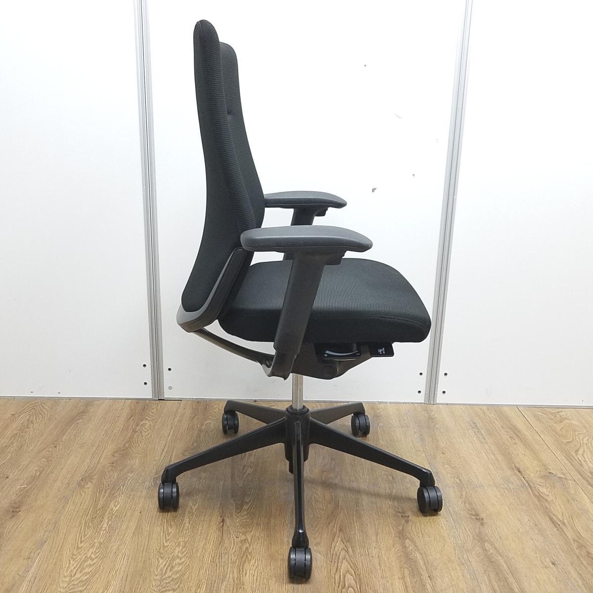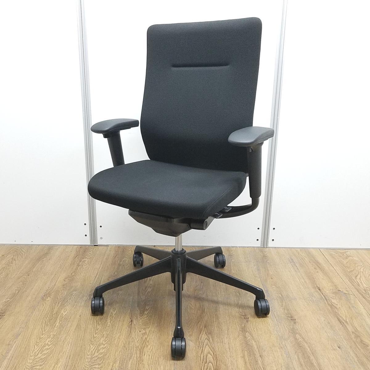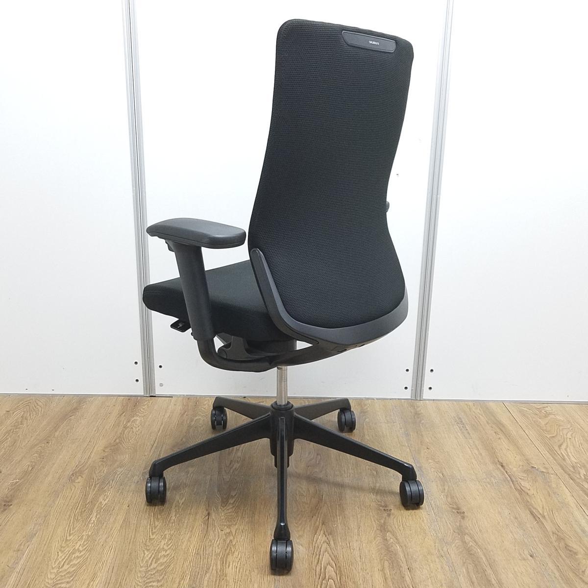 オカムラ製 コーラル ブラック 肘付き アジャストアーム※可動肘 ハイバック 背もたれクロス仕様 厚めのクッションで快適な座り心地を実現! どんな空間にも調和するデザインと最上級の操作性! 肘付きハイバックチェア!!- 京都東寺店