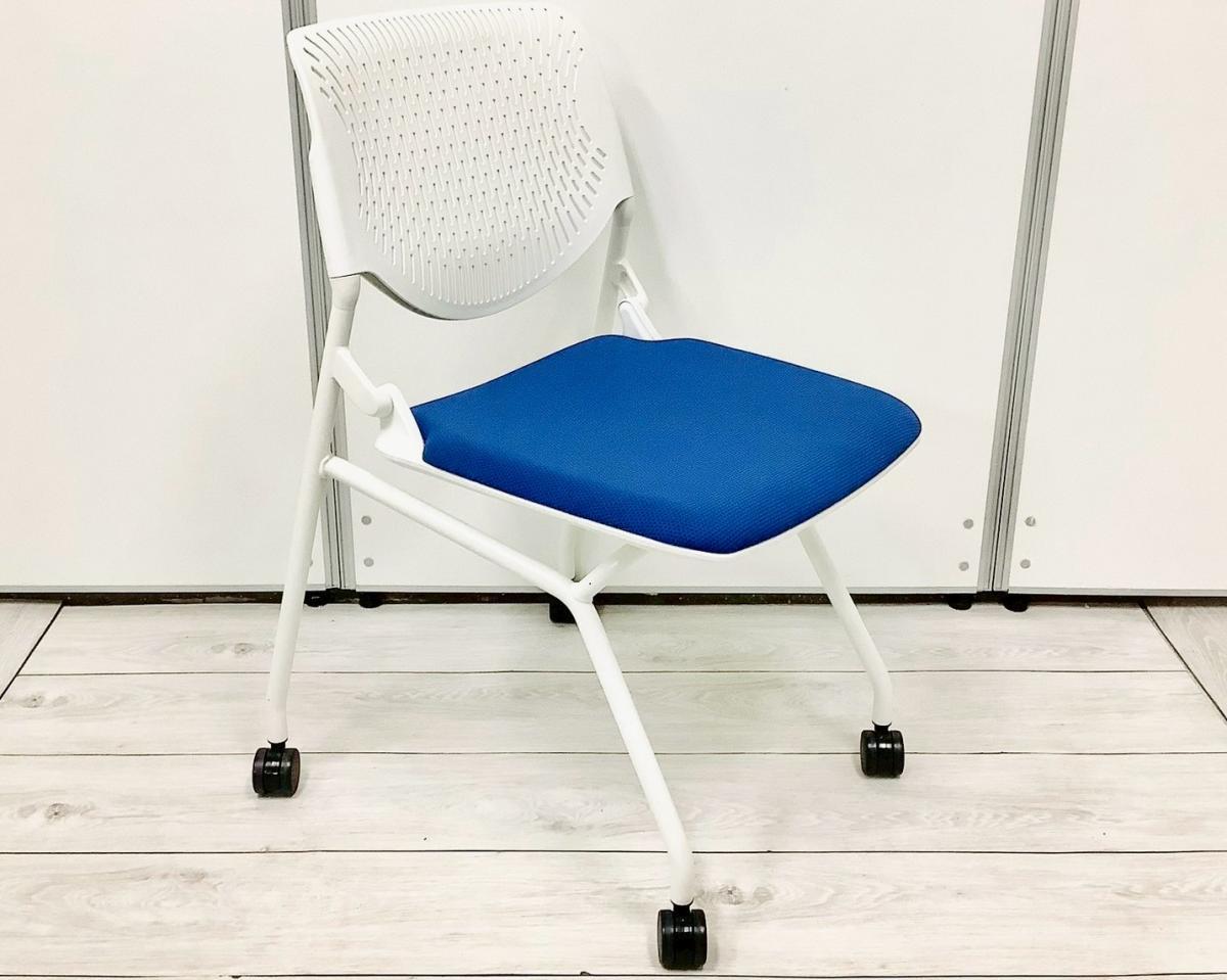 【使わない時は重ねて収納!さまざまな場面で活躍するミーティングチェア!】■オカムラ(okamura) ルナ(RUNA)チェア ネスティングチェア ミーティングチェア ■背面ヌードタイプ ■座面:ブルー × 背面:ホワイト