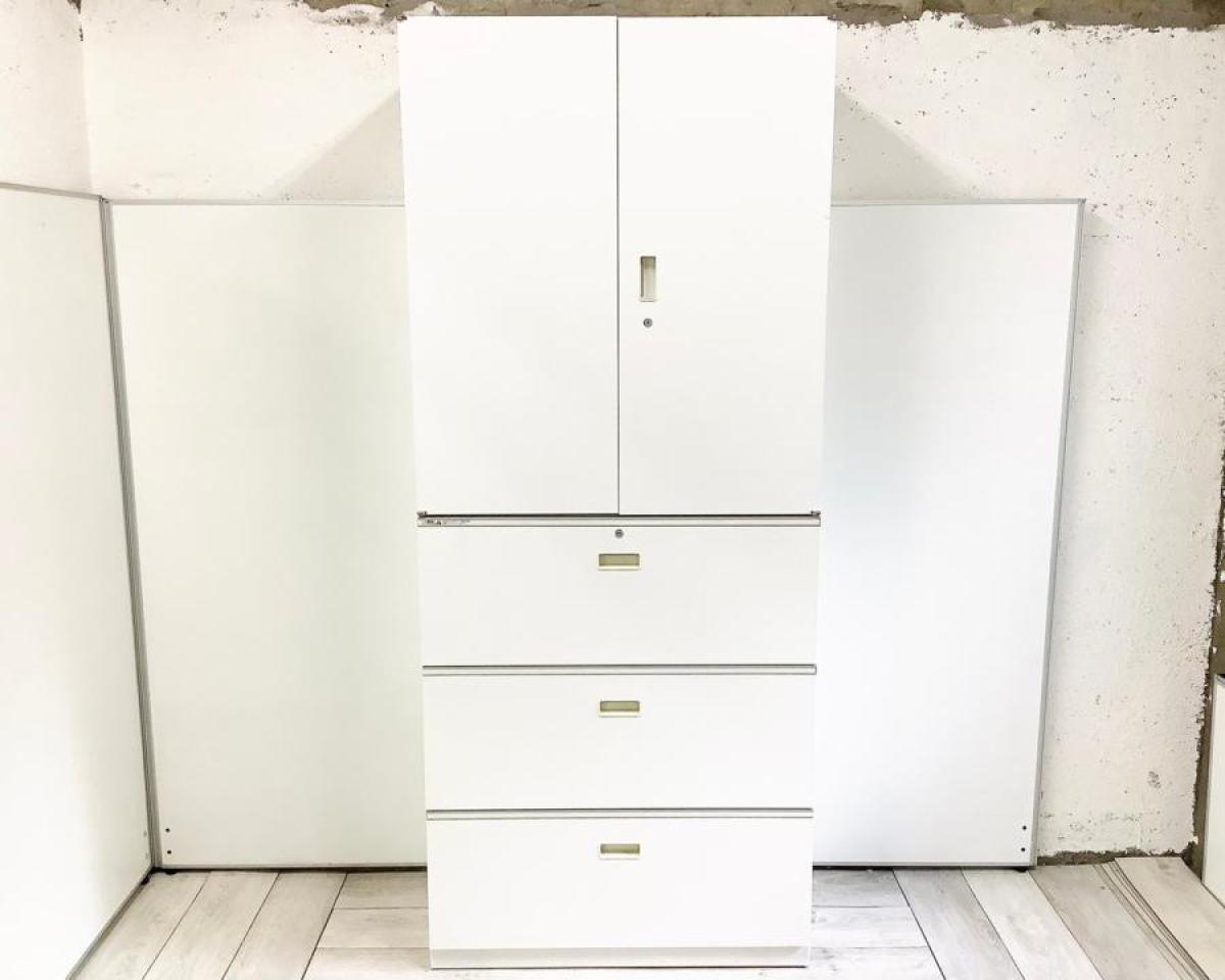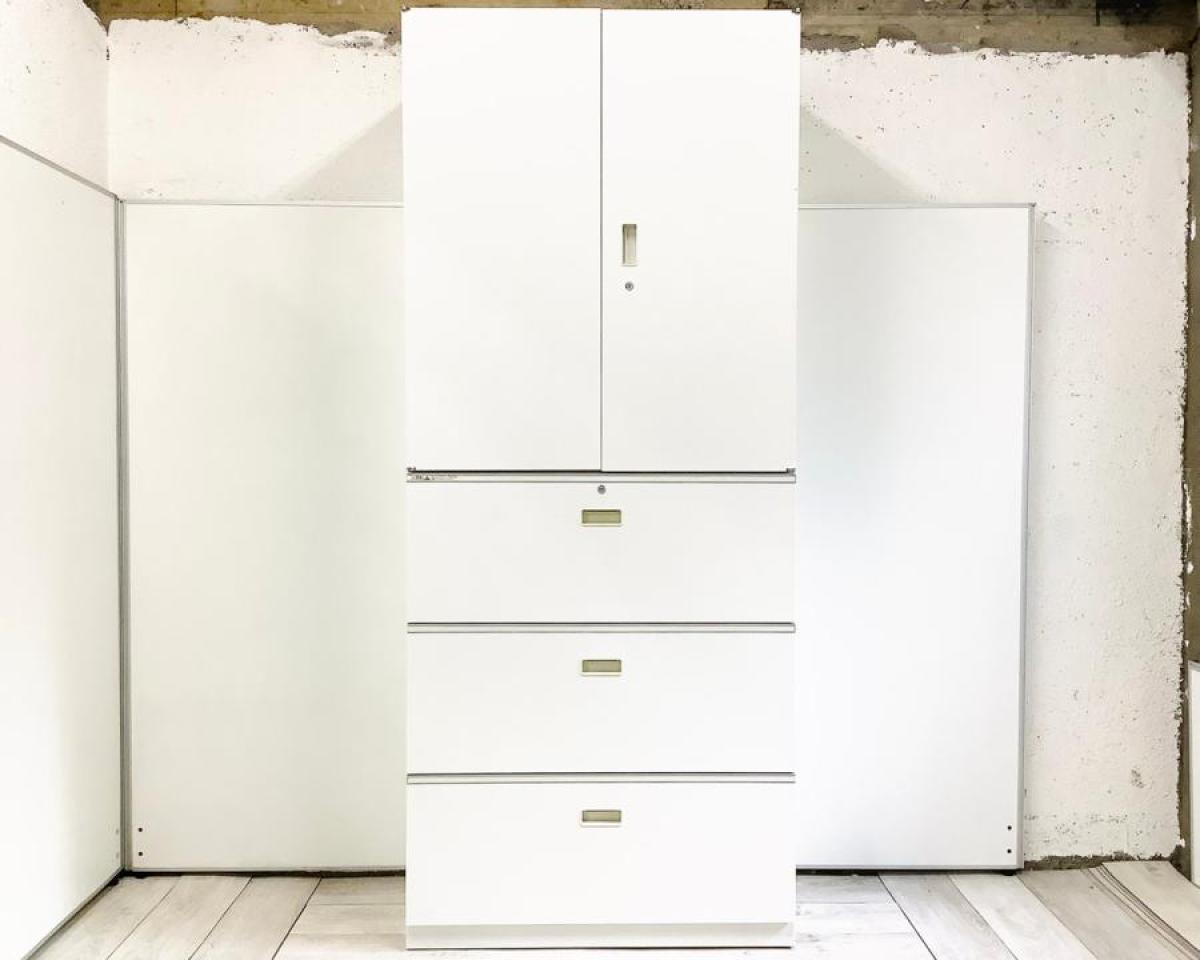 【大容量でスッキリ整理!観音開き+3段ラテラル書庫セットが入荷!】■イトーキ (ITOKI)製 シンライン(THUN LINE) ハイキャビネット (両開き+3段ラテラル) ■ホワイト ■シリンダー鍵