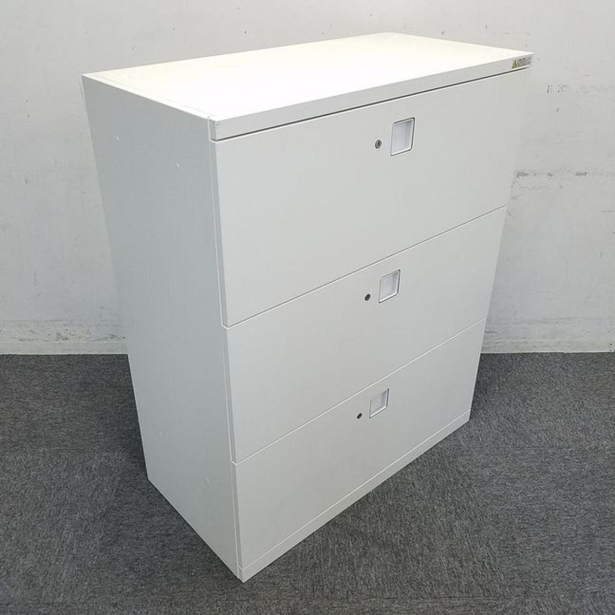 【ファイル収納にオススメ!高品質で使いやすい人気シリーズの3段ラテラル書庫!】■オカムラ(okamura)製 レクトラインシリーズ 3段ラテラル書庫 ローキャビネット H1100㎜ ■ホワイト ■シリンダー鍵 ■天板付き(天板:ホワイト) ※日焼け有