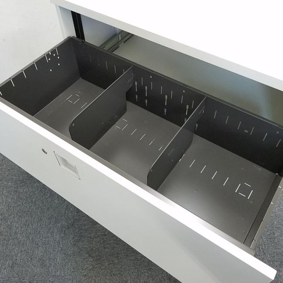 【使いやすさで選ぶならコレ!大容量の三段キャビネット】■オカムラ(Okamura)製 レクトラインシリーズ(Rectline) 3段ラテラル書庫 ローキャビネット ■天板付き ■シリンダー錠 ■ホワイト