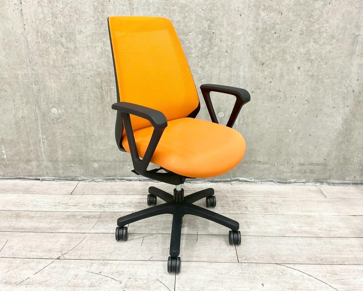 入替セール品につきお値下げ!【フレッシュなオフィスになること間違いなし!人気のメッシュチェア】■イトーキ(ITOKI) ノナ(nona)チェア 背面メッシュ ■サークル肘 ■アンバーオレンジ 【デスクに納まりの良いコンパクト設計】