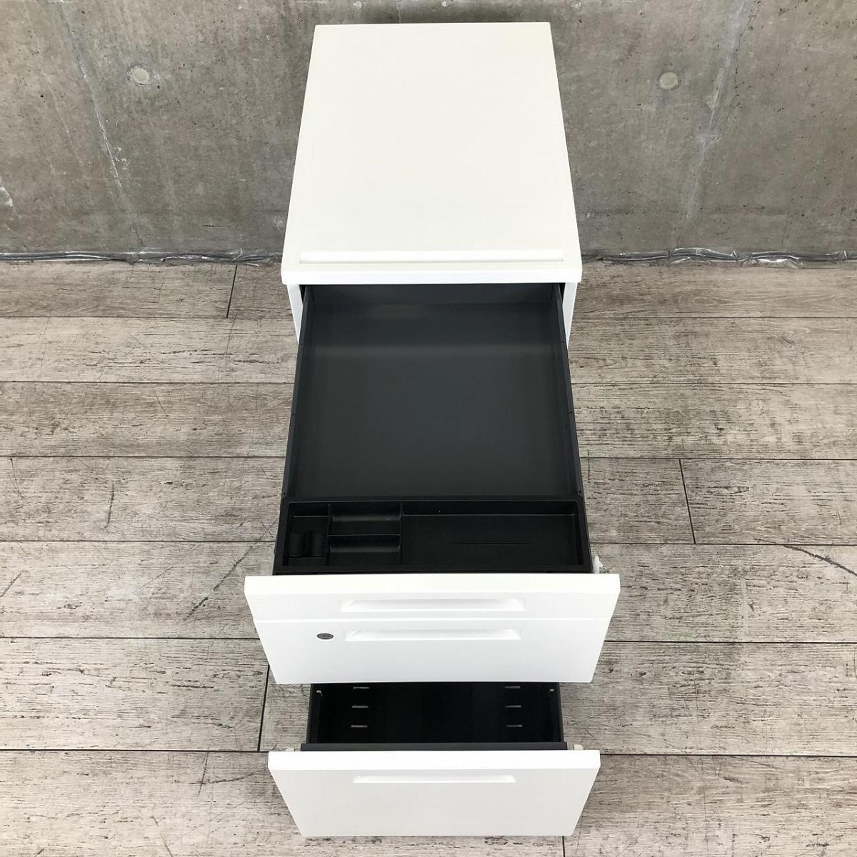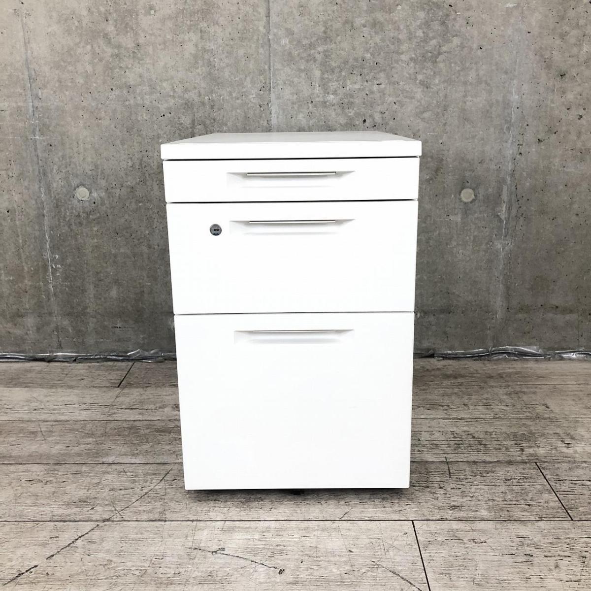 【平机・フリーアドレスデスクのお供に!人気のホワイトカラーの3段ワゴン!】■コクヨ(KOKUYO)製 iSシリーズ 3段ワゴン デスクインワゴン H615mm ■ホワイト ■シリンダー錠- 千葉店