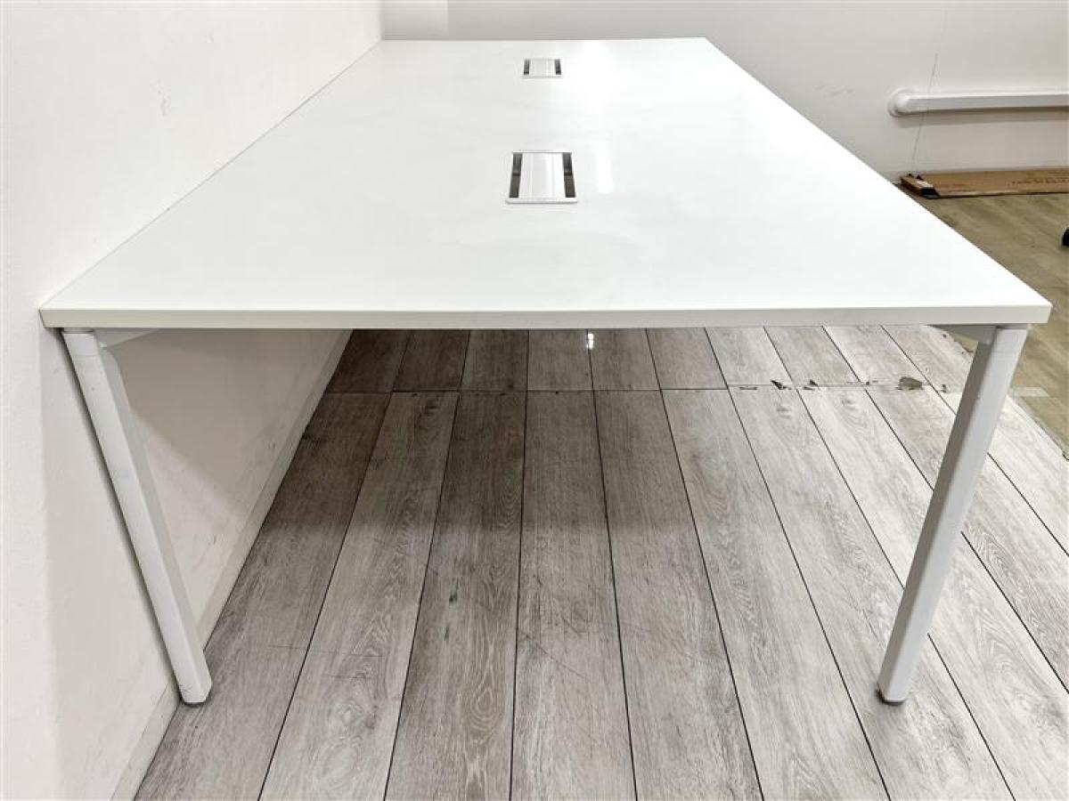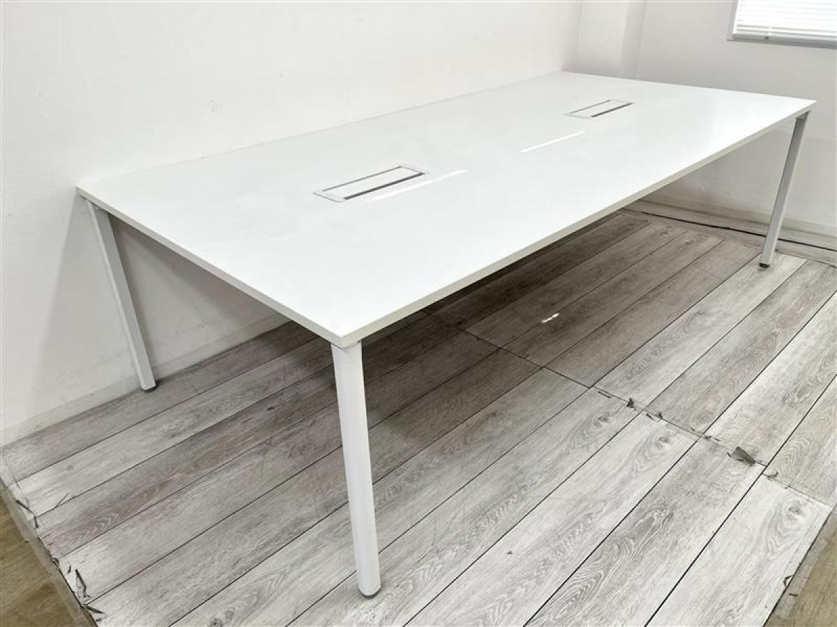 【定価約14万円】【配線口付きのためPCなどを使った会議などに便利!】■内田洋行/プレナシリーズ ■大型テーブル ミーティングテーブル ■ホワイト ■4脚 ■8~10人使用におすすめ!- 在庫数