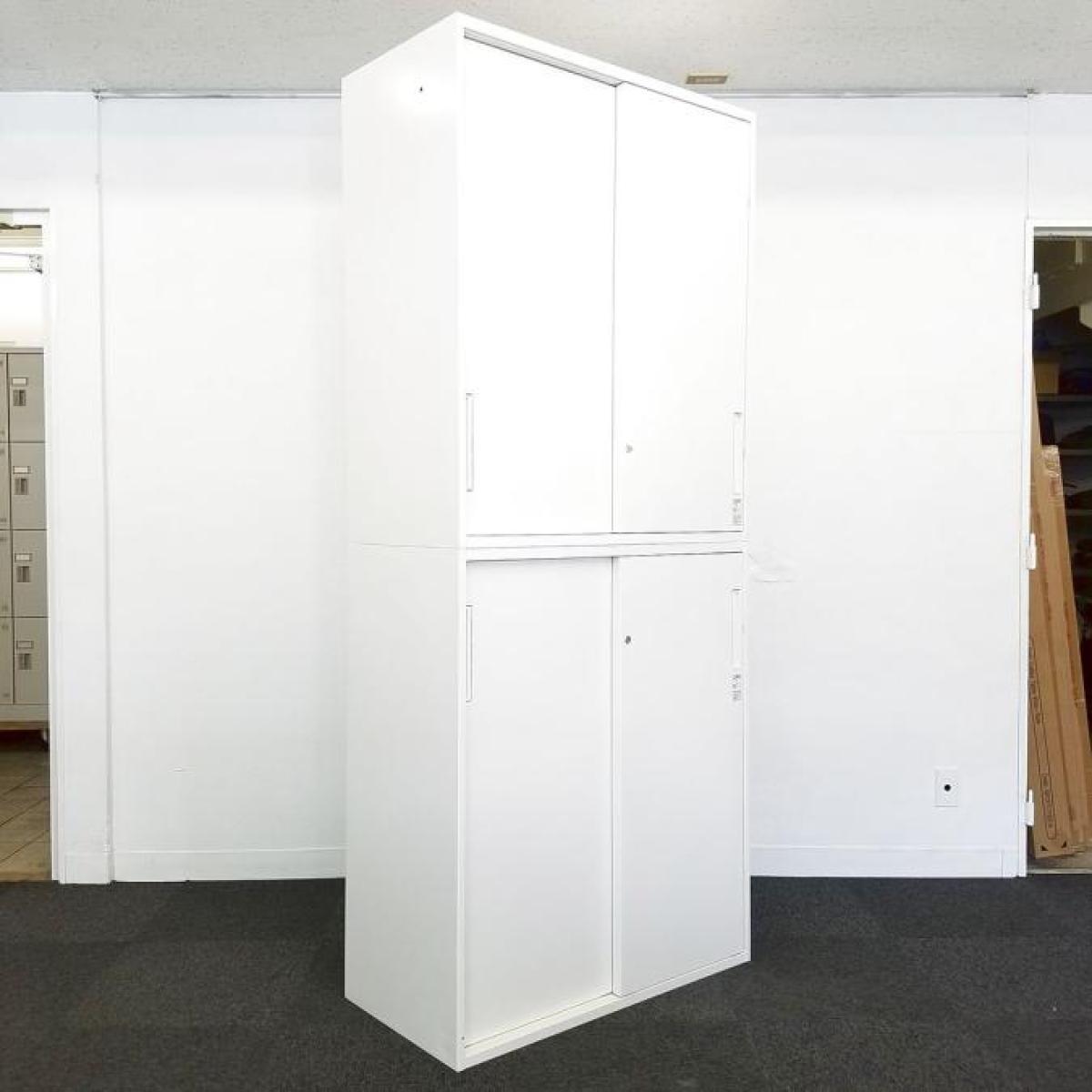 【手狭オフィスで大活躍!導線を確保できる上下引き違い書庫セット!】■コクヨ(KOKUYO)製 エディアシリーズ(EDIA) 上下引き違い書庫セット ハイキャビネット H2150㎜ ■2枚扉 ■シリンダー錠 ■ホワイト【入替セールにつき30%OFF!】