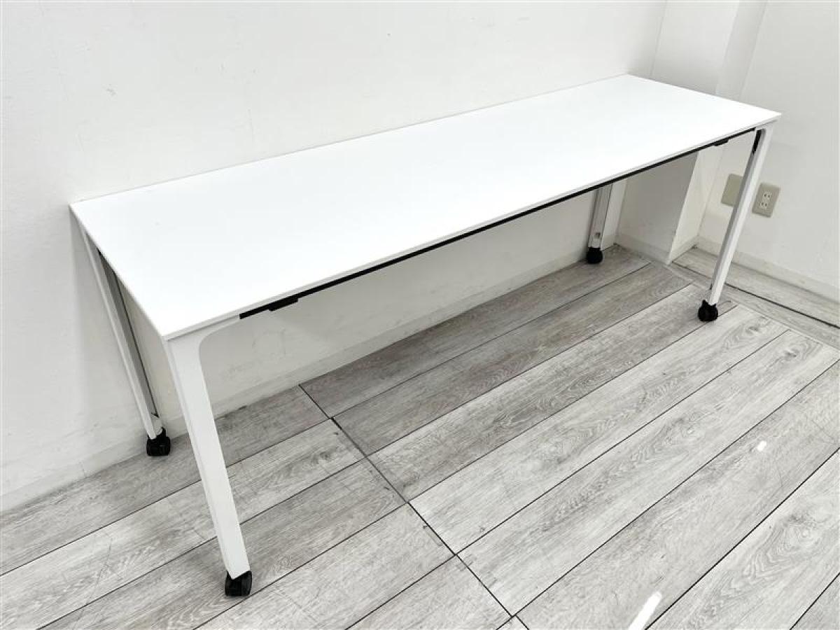 【定価約9万円】【配線機能を備えた脚が特徴!シンプルでスタイリッシュなデザインのミーティングチェア!】■内田洋行/フェルベクト ■ミーティングテーブル ■ホワイト ■キャスター付き- 仙台店
