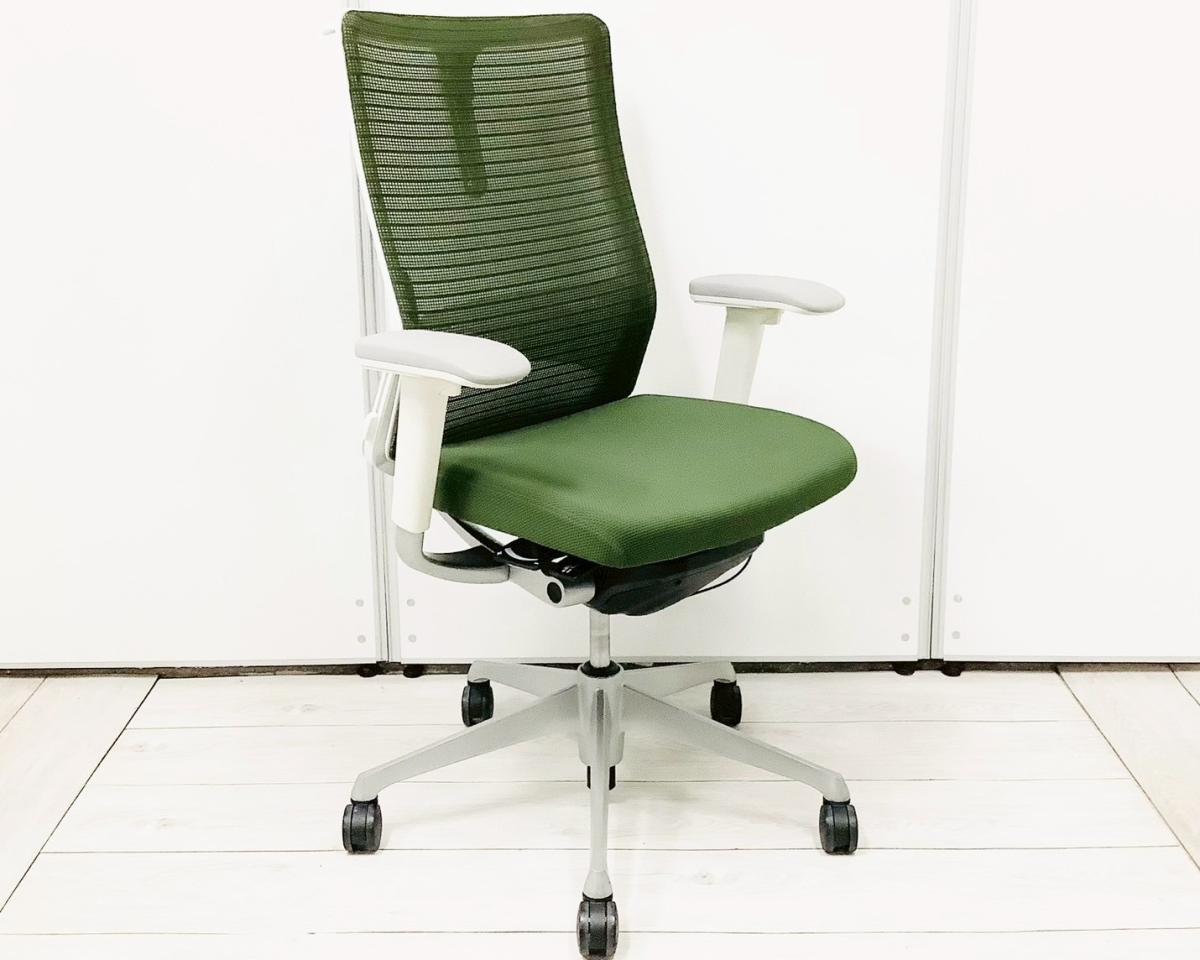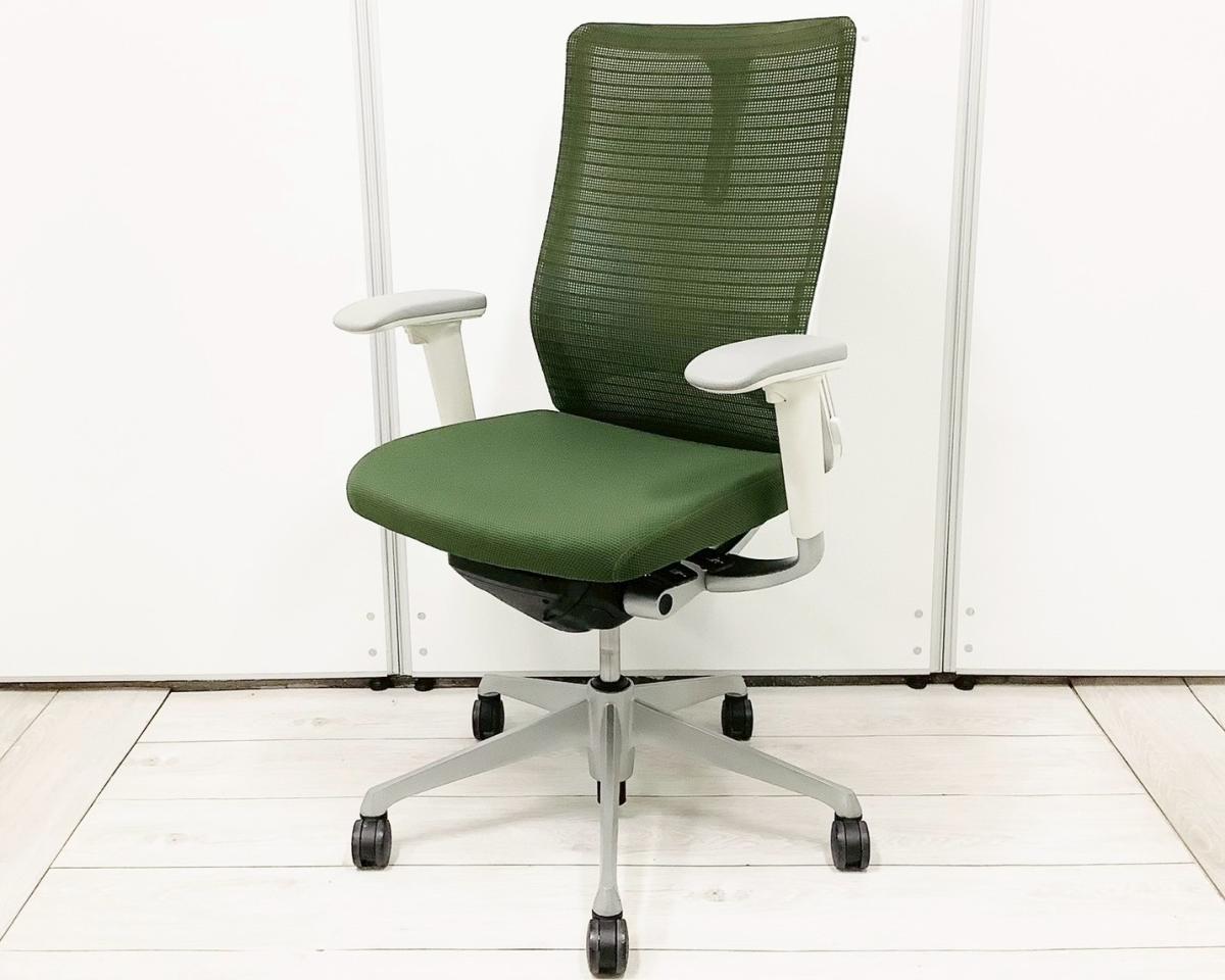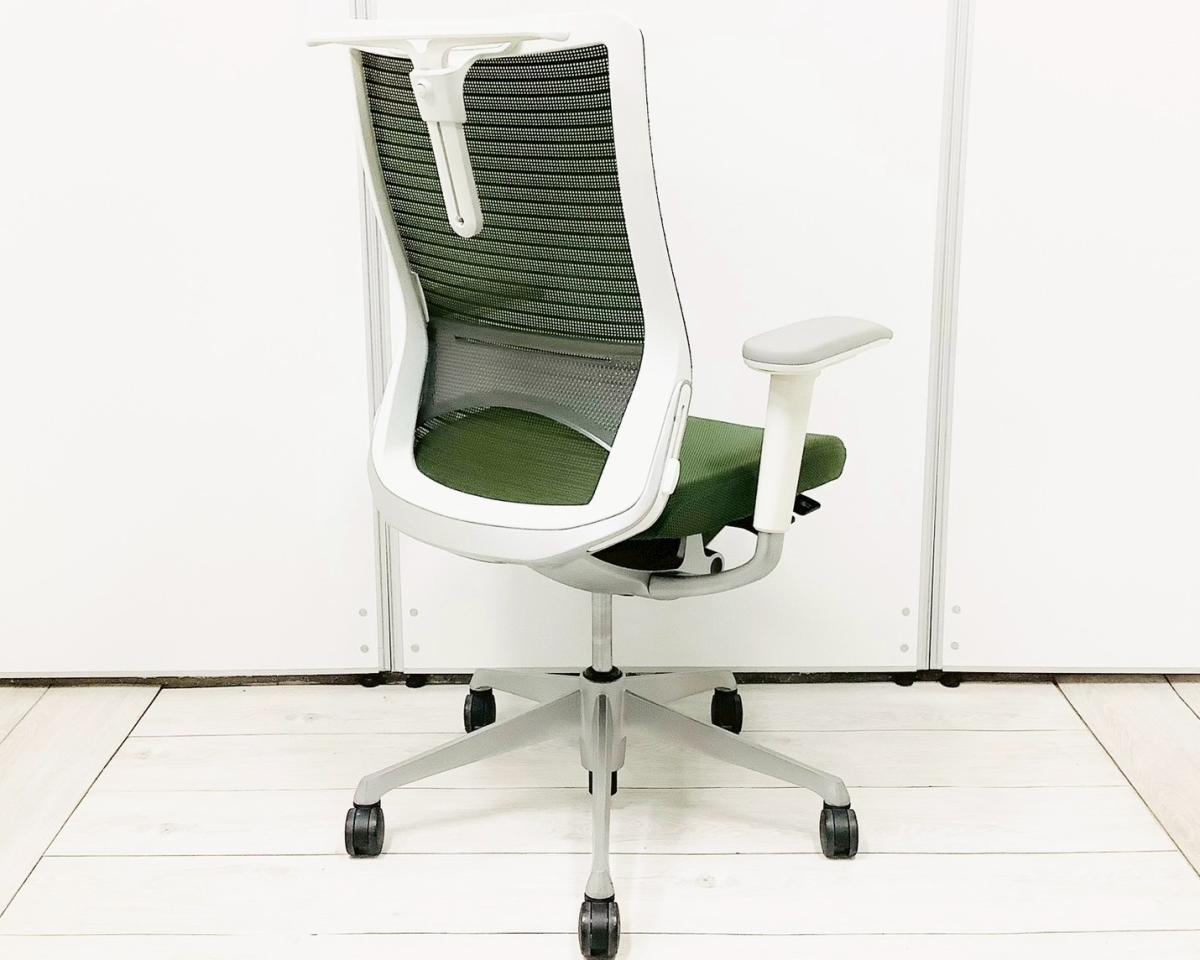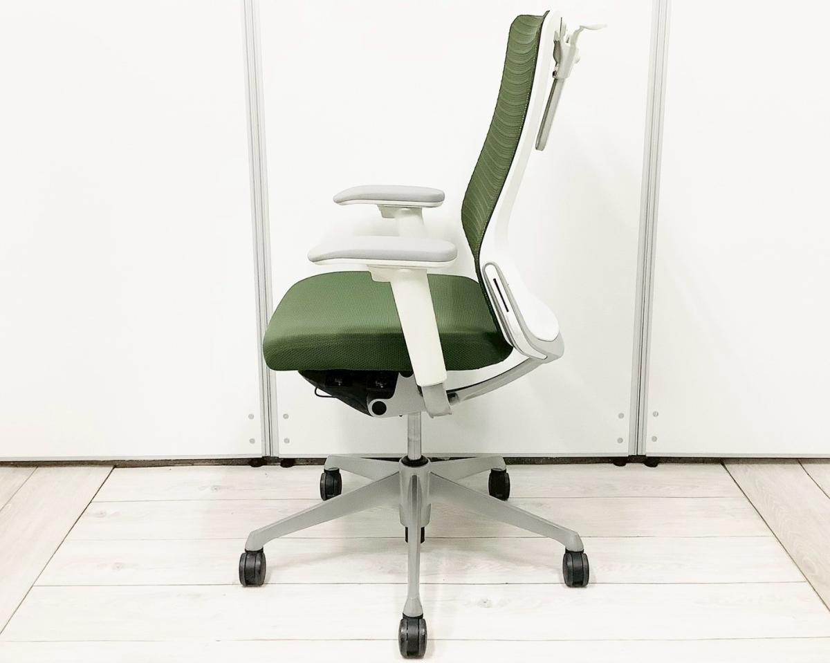 ■Okamura/オカムラ ■コーラルチェア(Choral) ■ダークグリーン×ホワイトシェル ■肘付き/可動肘 ■ハイバック ■背面/メッシュ ■ランバーサポート付 【弊社使用欄:A01043897】