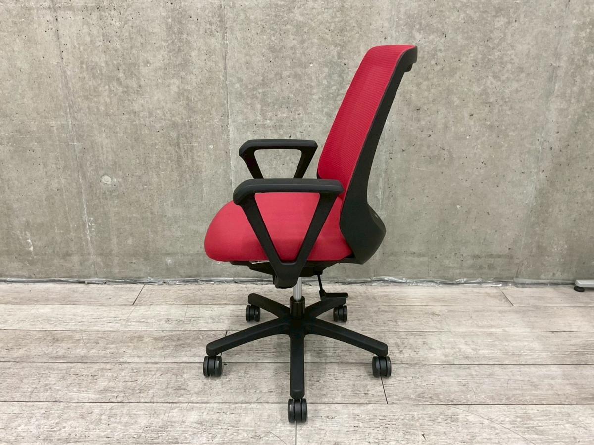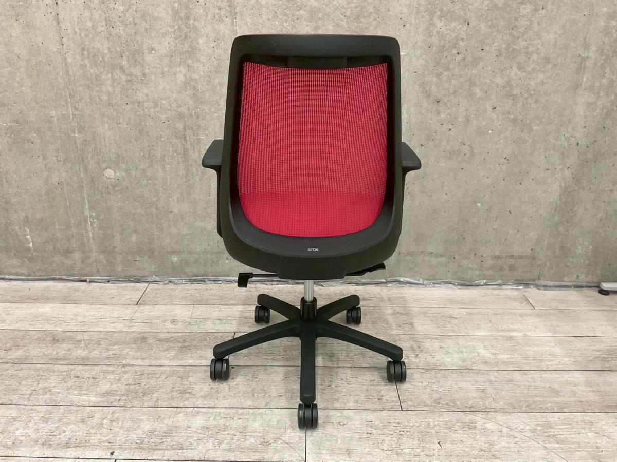 【座りやすくてコンパクト!肩回りが動かしやすい背面メッシュの人気チェア!】■イトーキ(ITOKI) ノナ(nona)チェア ハイバック 肘付き ■サークル肘 ■背面メッシュ ■ラズベリーレッド × ホワイトフレーム【K9】